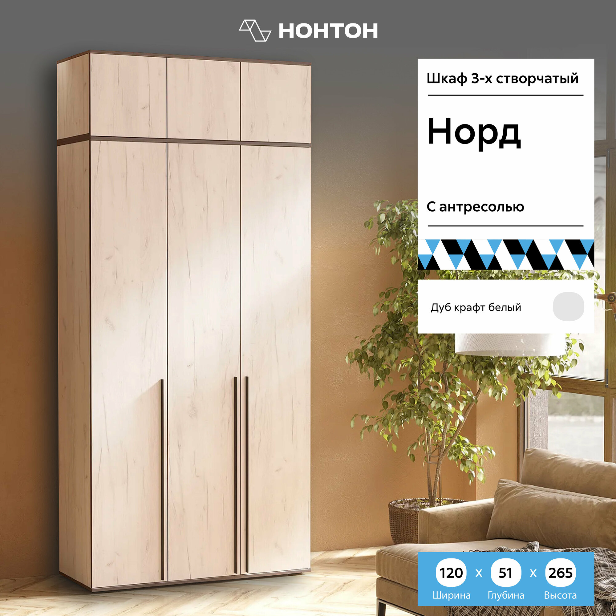 СохранитьШкаф Миф Норд 3-х створчатый с антресолью дуб крафт белый, 120x51x265.4 см интересное:
