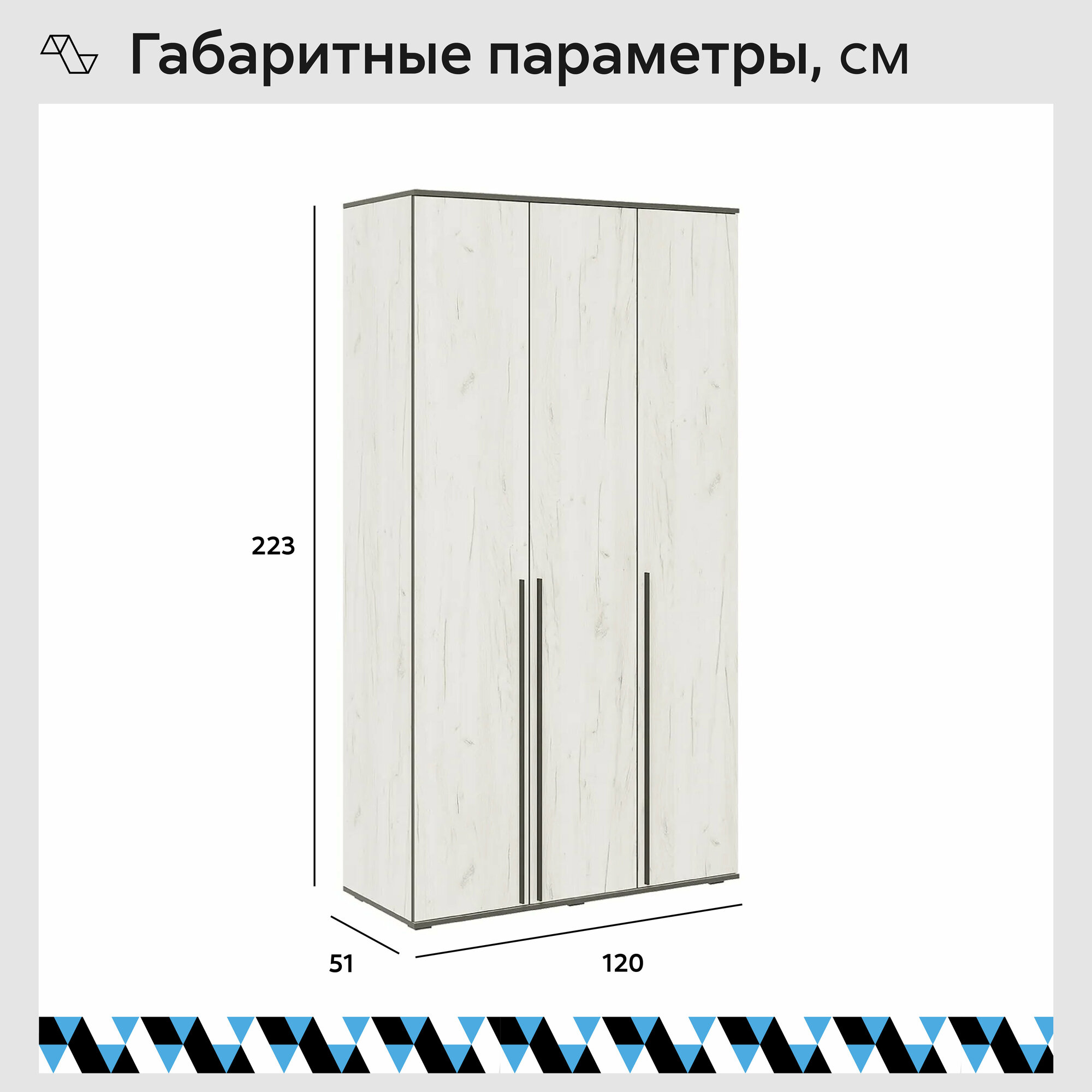 СохранитьШкаф МиФ Норд 3-х створчатый дуб крафт белый 120x51x223.6 см интересное: