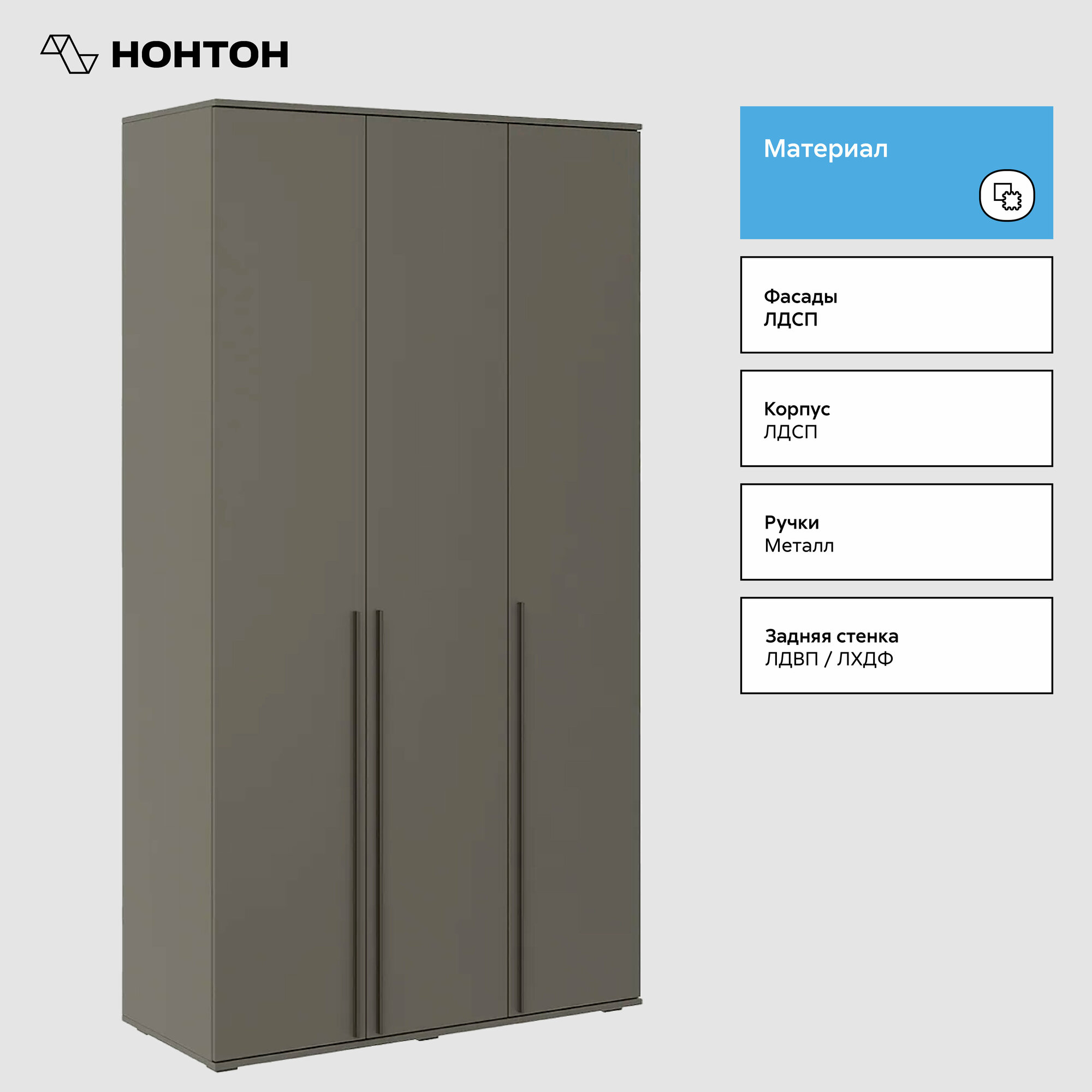 Купить Шкаф МиФ Норд 3-х створчатый графит 120x51x223.6 см