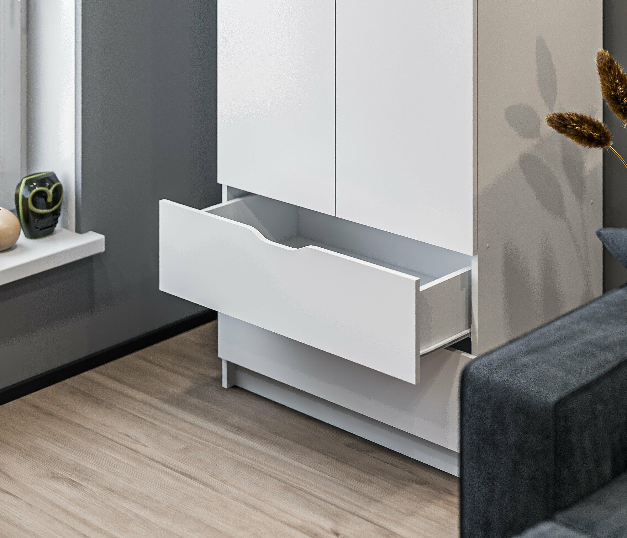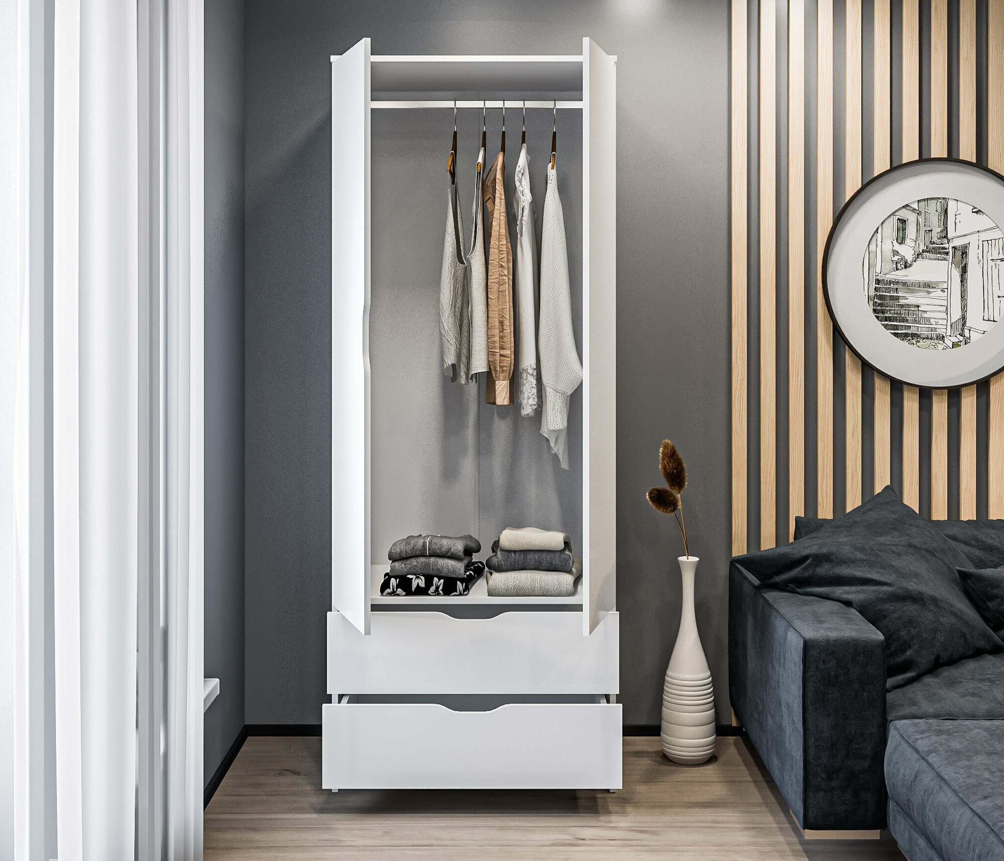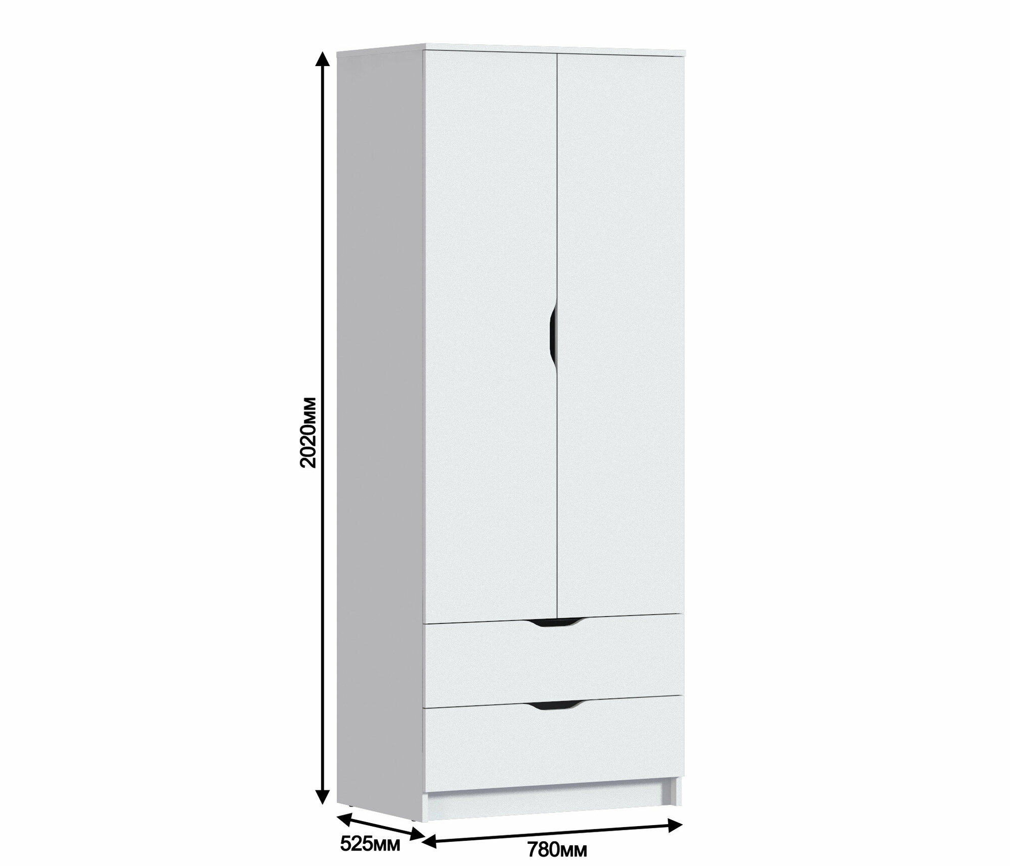 Двухдверный шкаф столплит Бруклин СБ-3345 с 2 ящиками, со штангой, без ручек в спальню, детскую, гостиную Белый 78х202х52см интересное: