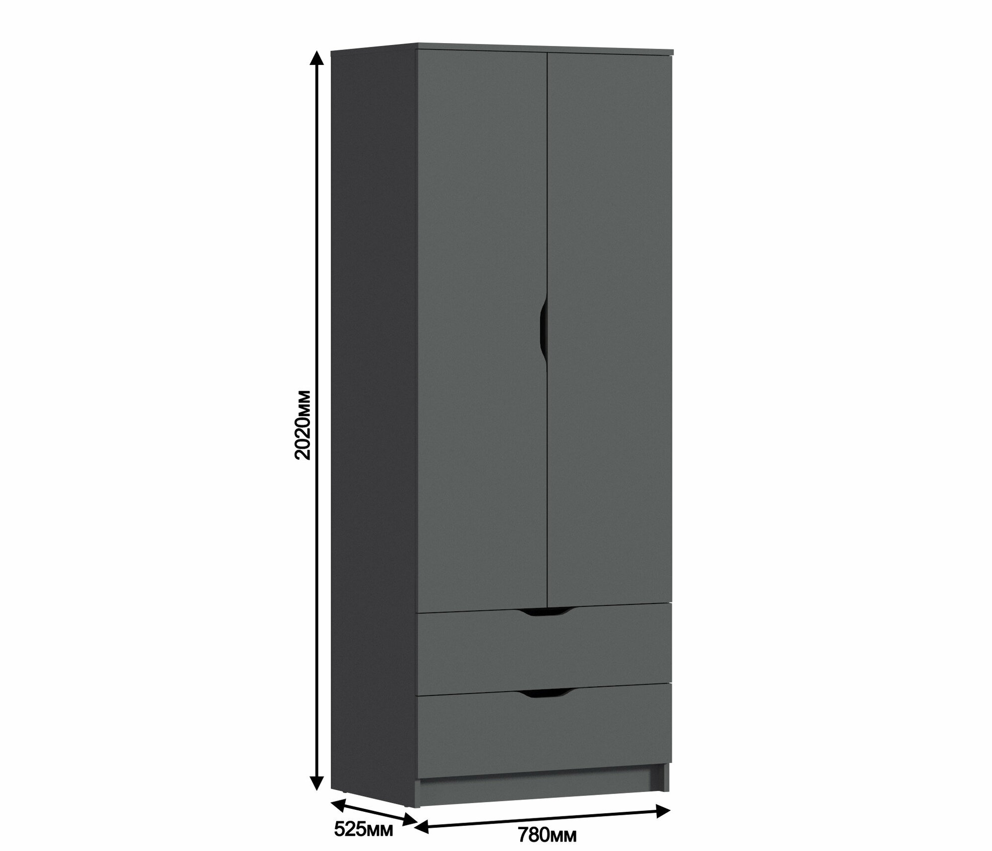 Купить Двухдверный шкаф столплит Бруклин СБ-3345 с 2 ящиками, со штангой, без ручек в спальню, детскую, гостиную Диамант серый78х202х52см
