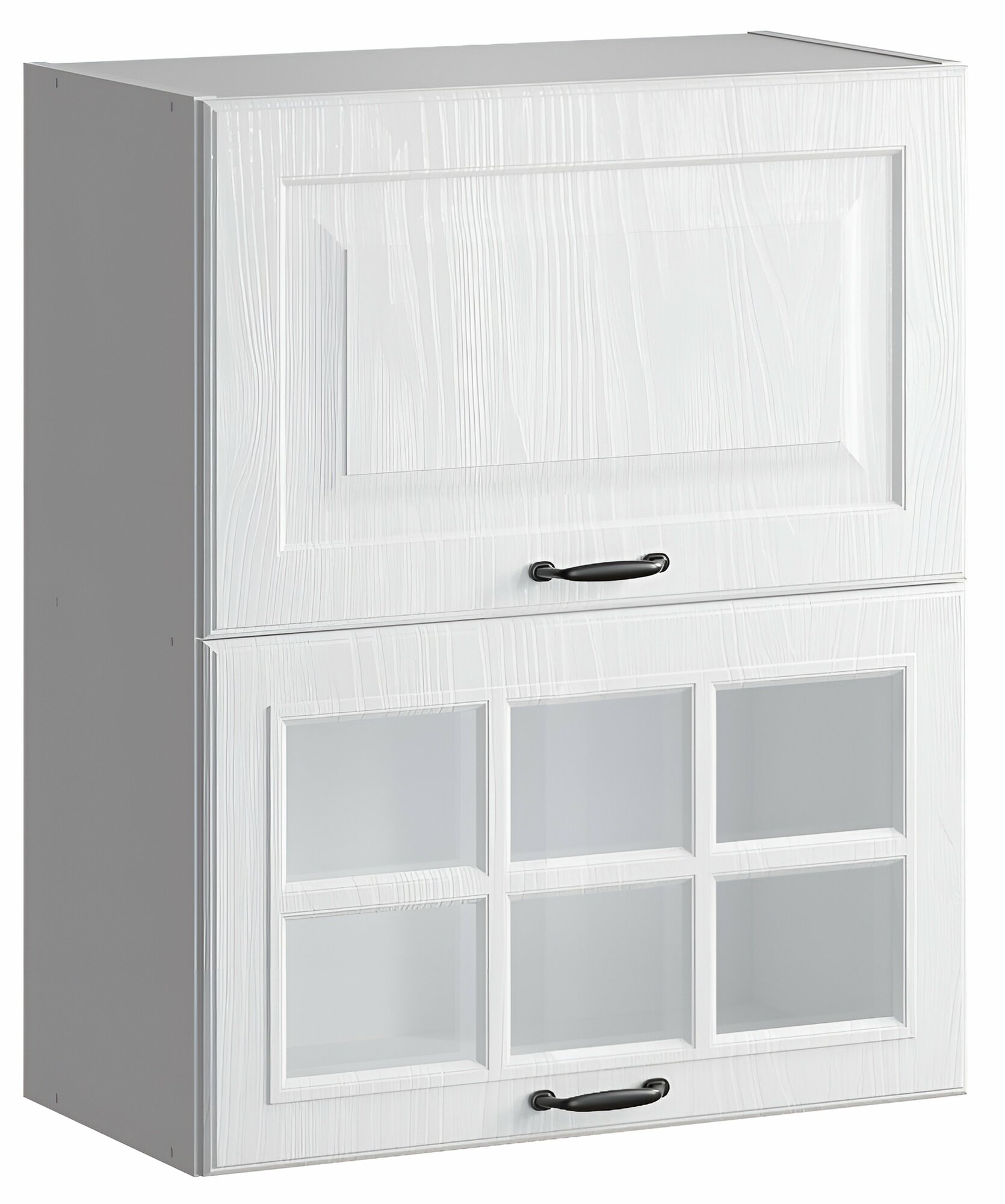 Купить Шкаф кухонный навесной двойной 60 см, с газлифтами, МДФ Белая текстура + стекло