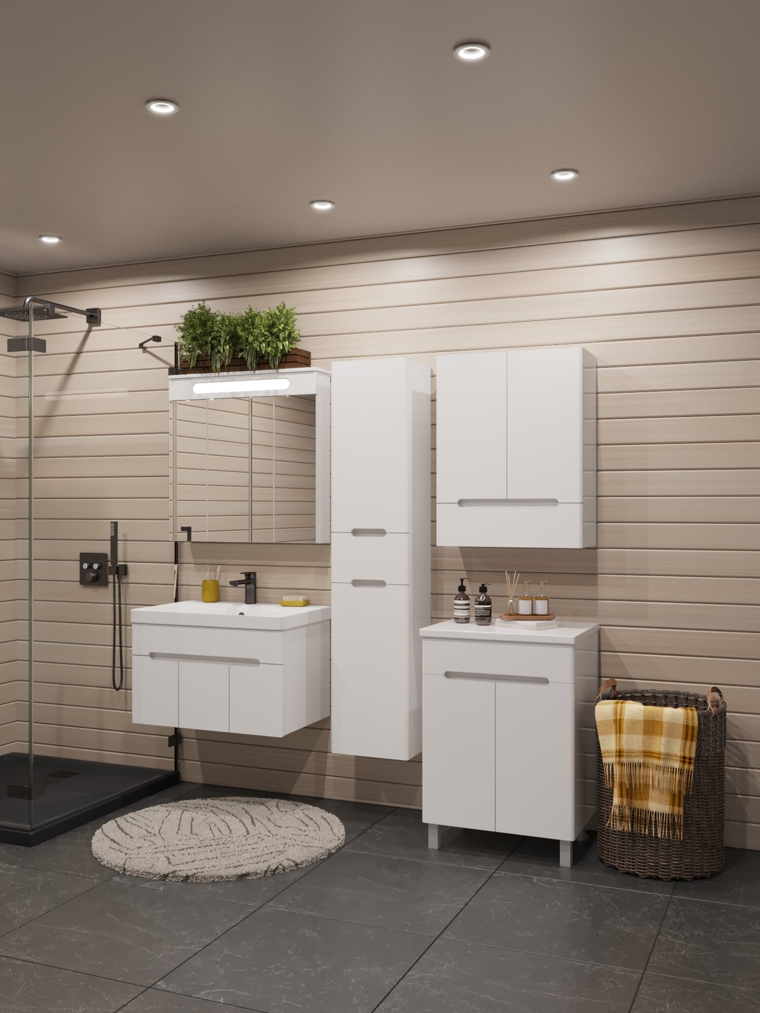 Шкаф в ванную с зеркалом Кипарис 50, с подсветкой, белый