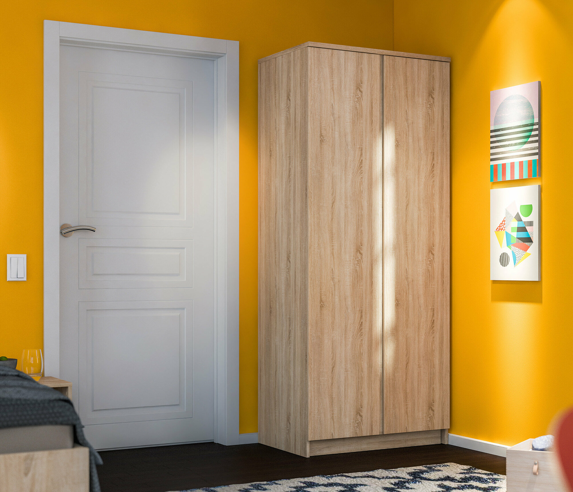Двухдверный шкаф столплит Кито СБ-2309 со штангой, ЛДСП дуб сонома, 82х200х57 см интересное: