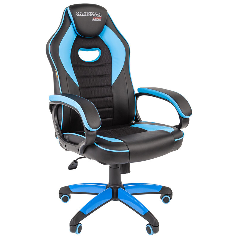 Компьютерное кресло Chairman GAME 16 офисное, обивка: искусственная кожа/текстиль, цвет: черный/голубой