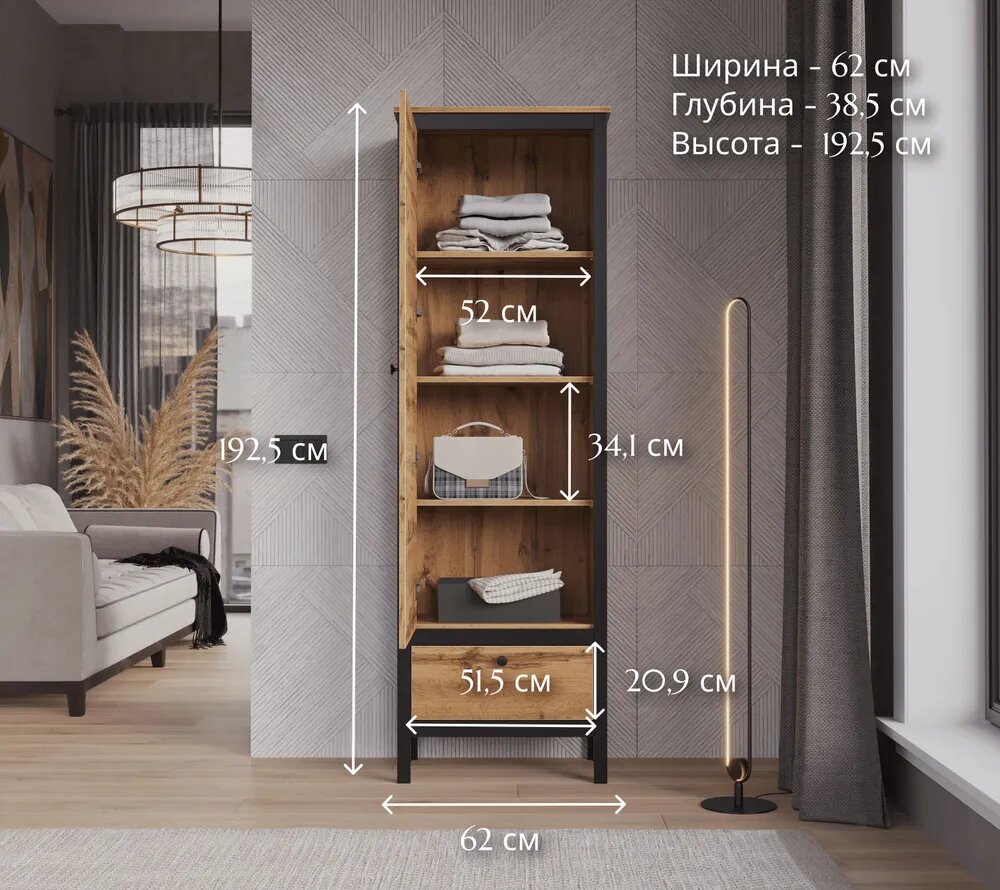 БРВ-Мебель Шкаф однодверный с полками и одним ящиком Лофт REG1D1S дуб вотан