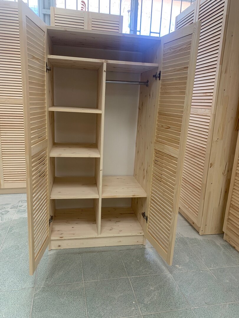 СохранитьШкаф из массива сосны для хранения вещей с 4 полками и штангой, 80х50х160см интересное: