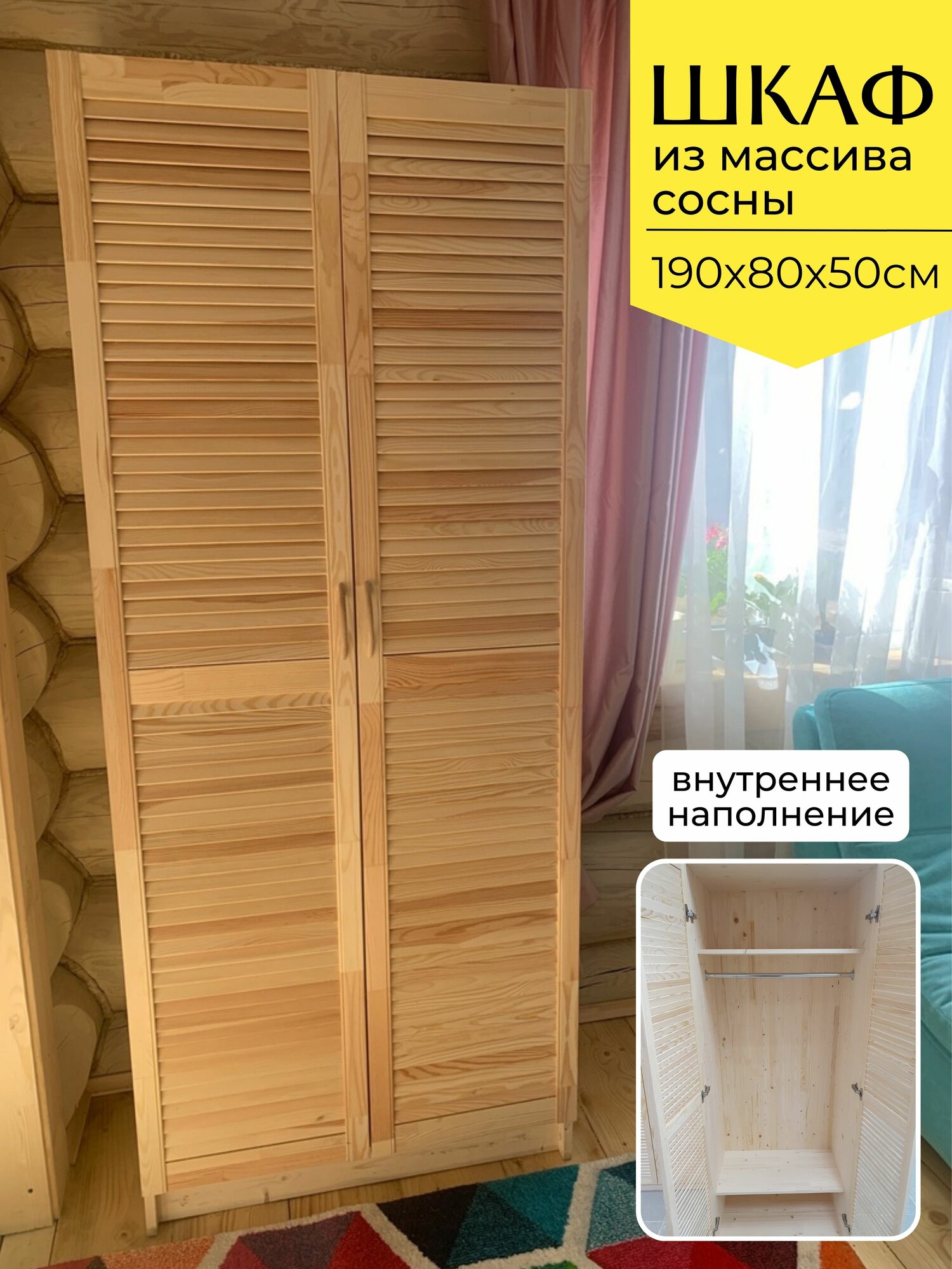 Купить Шкаф из массива сосны для хранения вещей с 2 полками и штангой, 80х50х190см