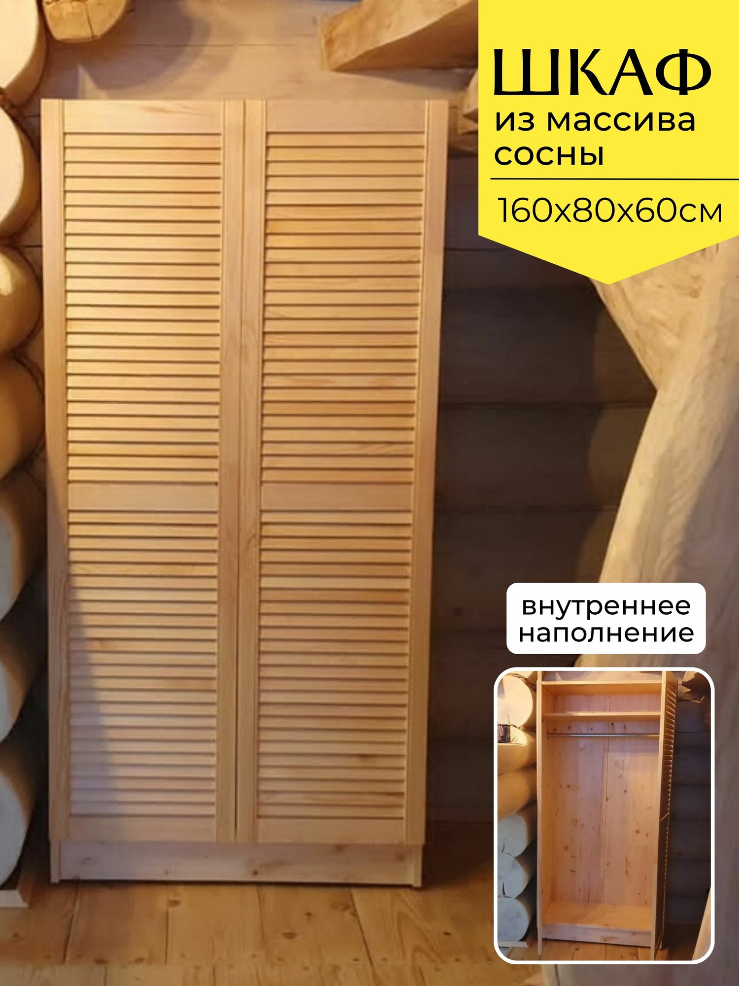 Купить Шкаф из массива сосны для хранения вещей со штангой, 80х60х160см