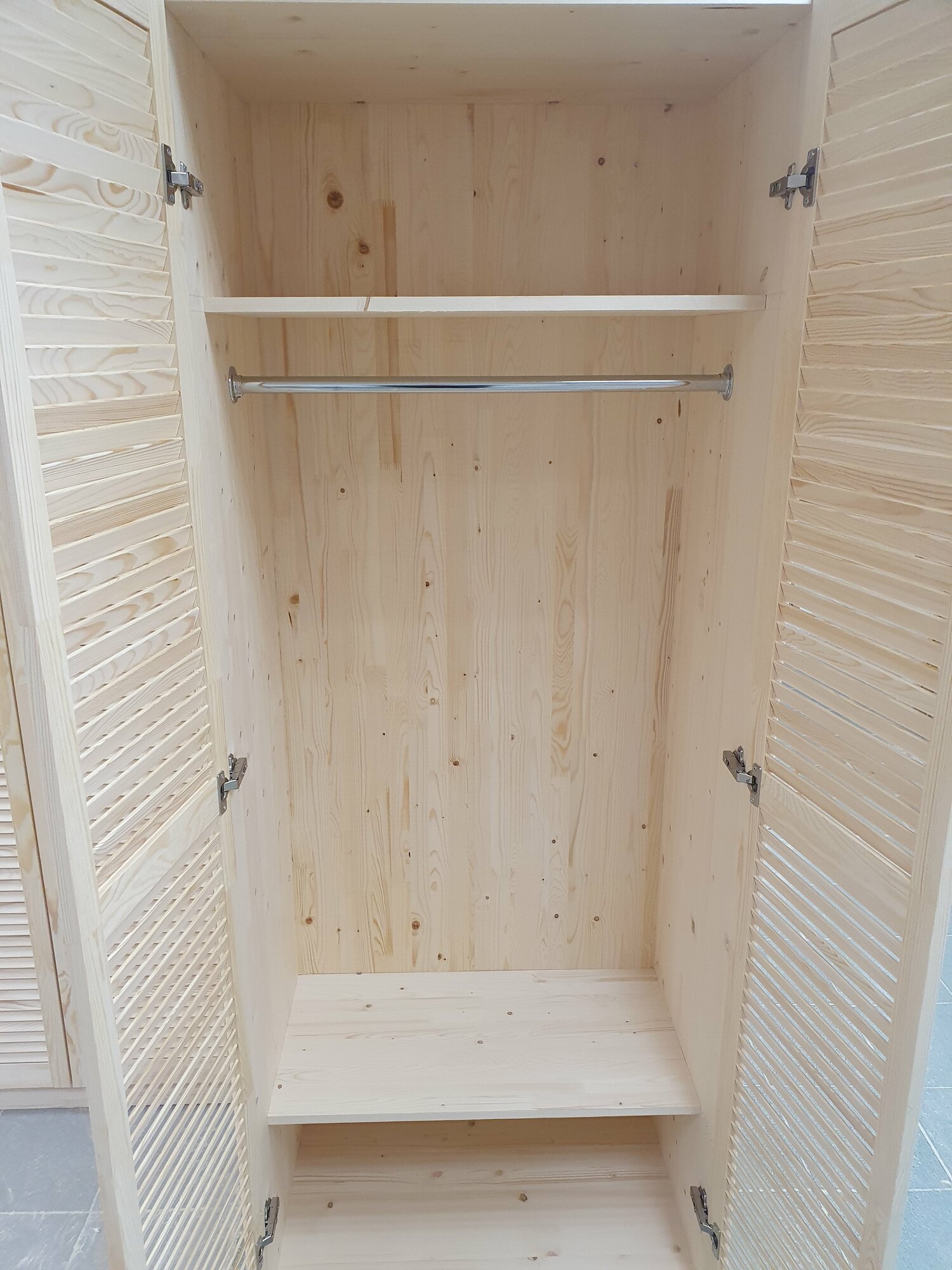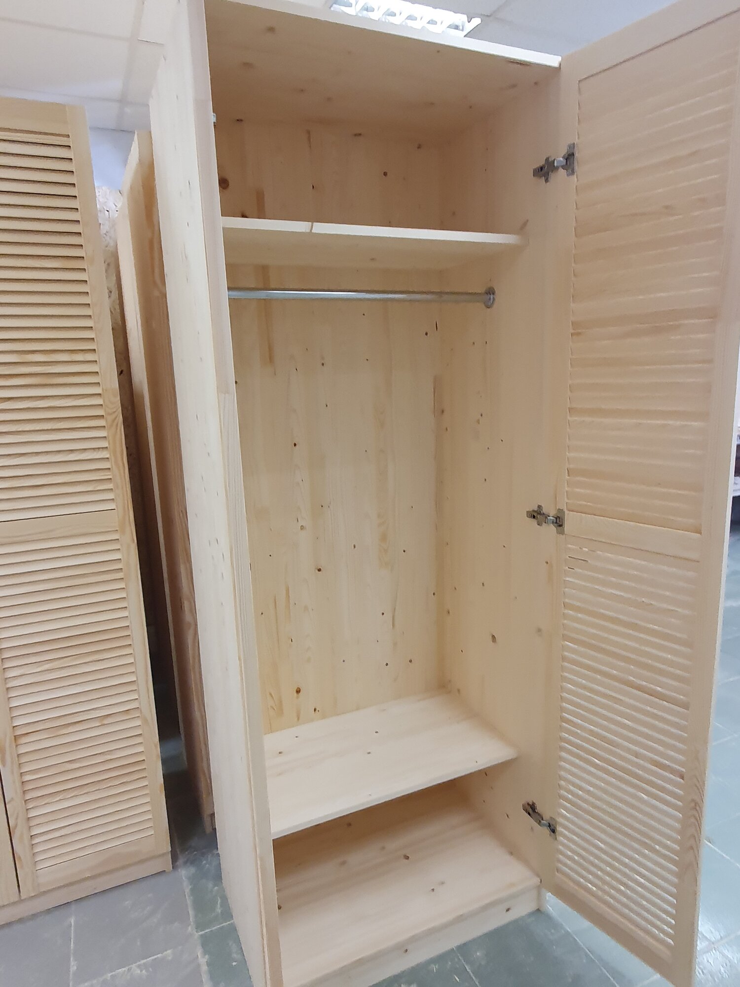 Шкаф из массива сосны для хранения вещей с 2 полками и штангой, 80х50х190см