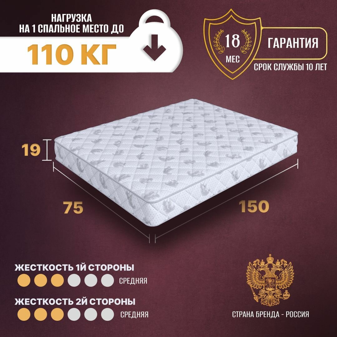 Матрас с независимыми пружинами 125х190, для кровати, Cosmic Orbit, анатомический, 19 см, средней жесткости