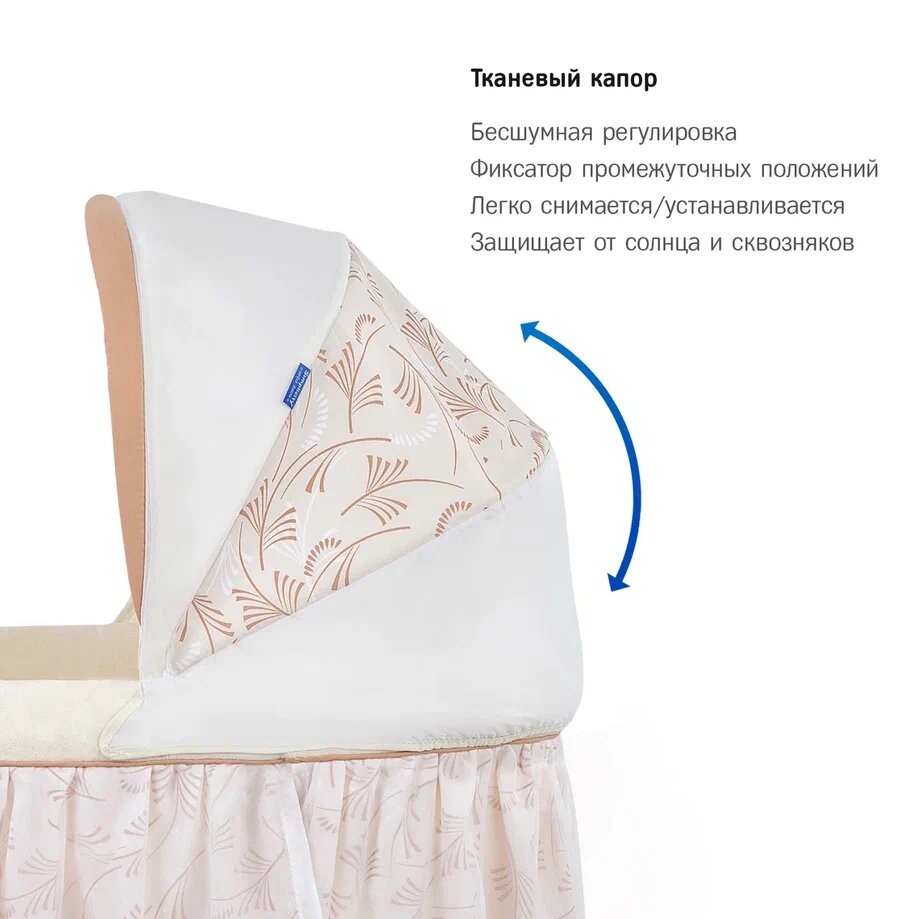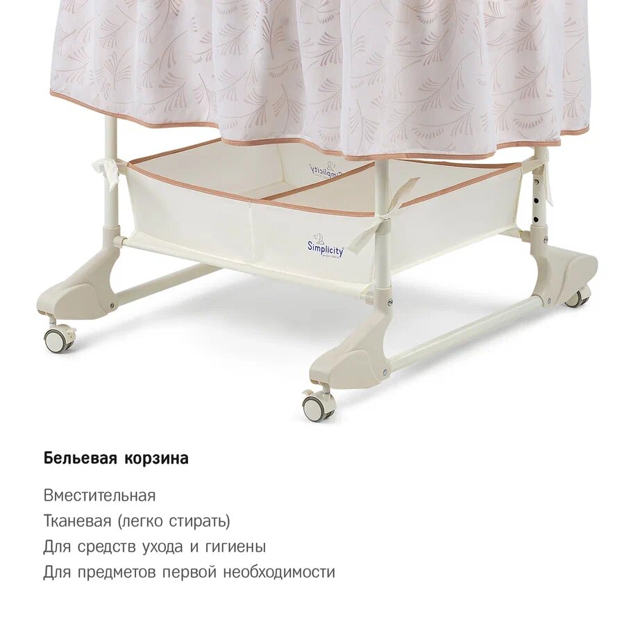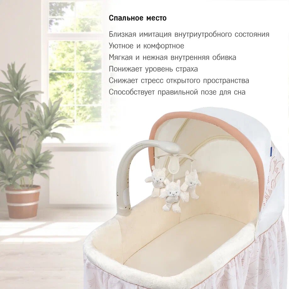 | Комплектация | колыбель / съёмный матрасик / наматрасник / капор / электронный мобиль с игрушками / электрошнур с адаптером (американская вилка) / тканевая корзина для белья |