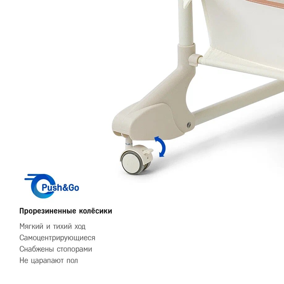 | Особенности | колеса / колыбельные мелодии / приставная / стопор колес / съемный/опускающийся бортик |