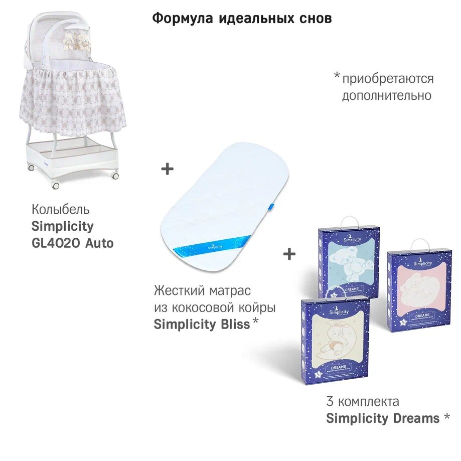 Купить Колыбель-кроватка Simplicity GL4020 Auto с системой автоукачивания (Grandeco Aurora)
