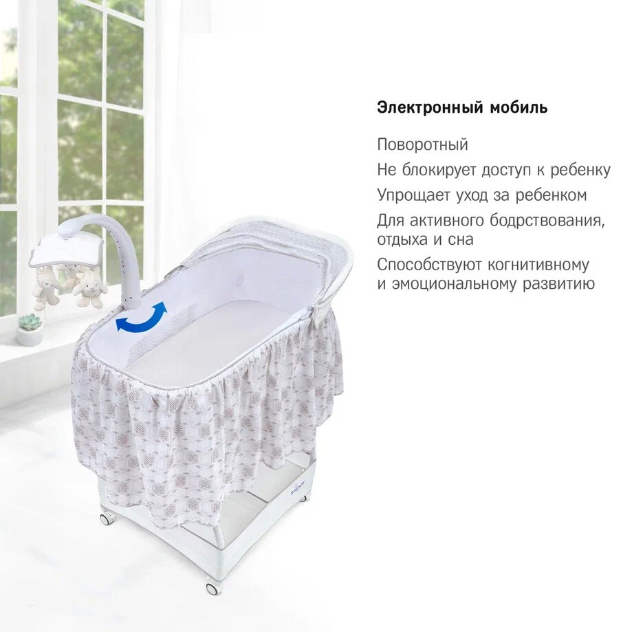 | Дополнительная информация | таймер укачивания 15 минут; высота бортиков люльки 25 см; вес 7 кг |