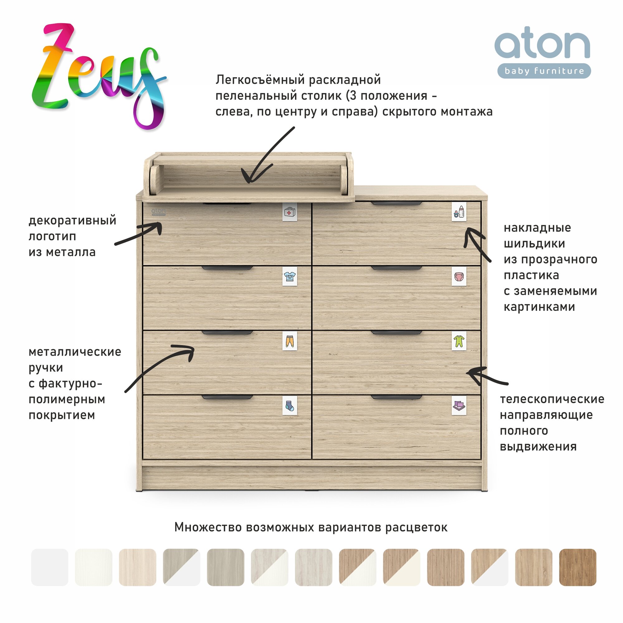 СохранитьАтон комод "Zeus" шариковые направляющие 8 ящ.Белый интересное: