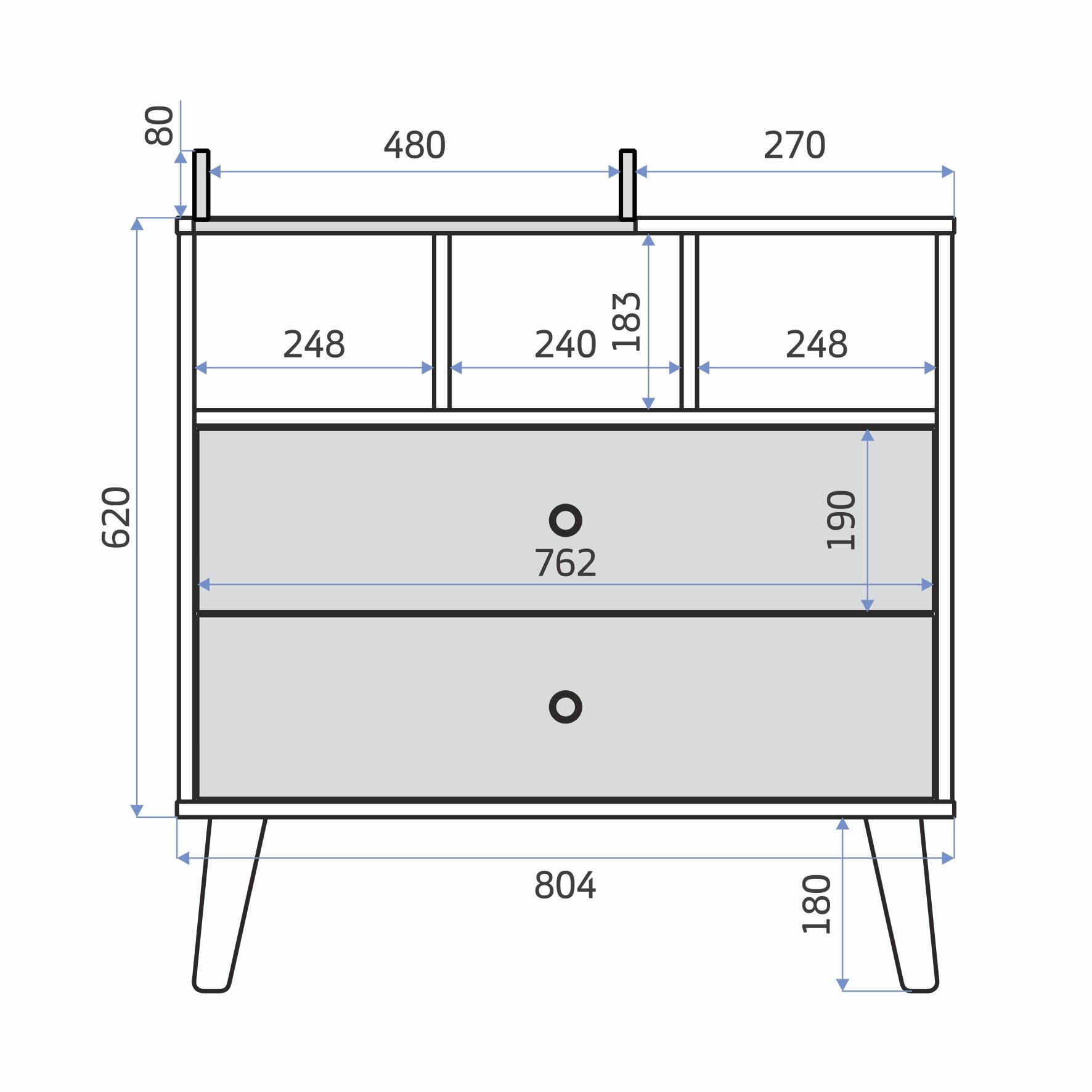 Комод пеленальный Атон MAKS ЛДСП 800/5 с органайзером, дуб канзас-серый