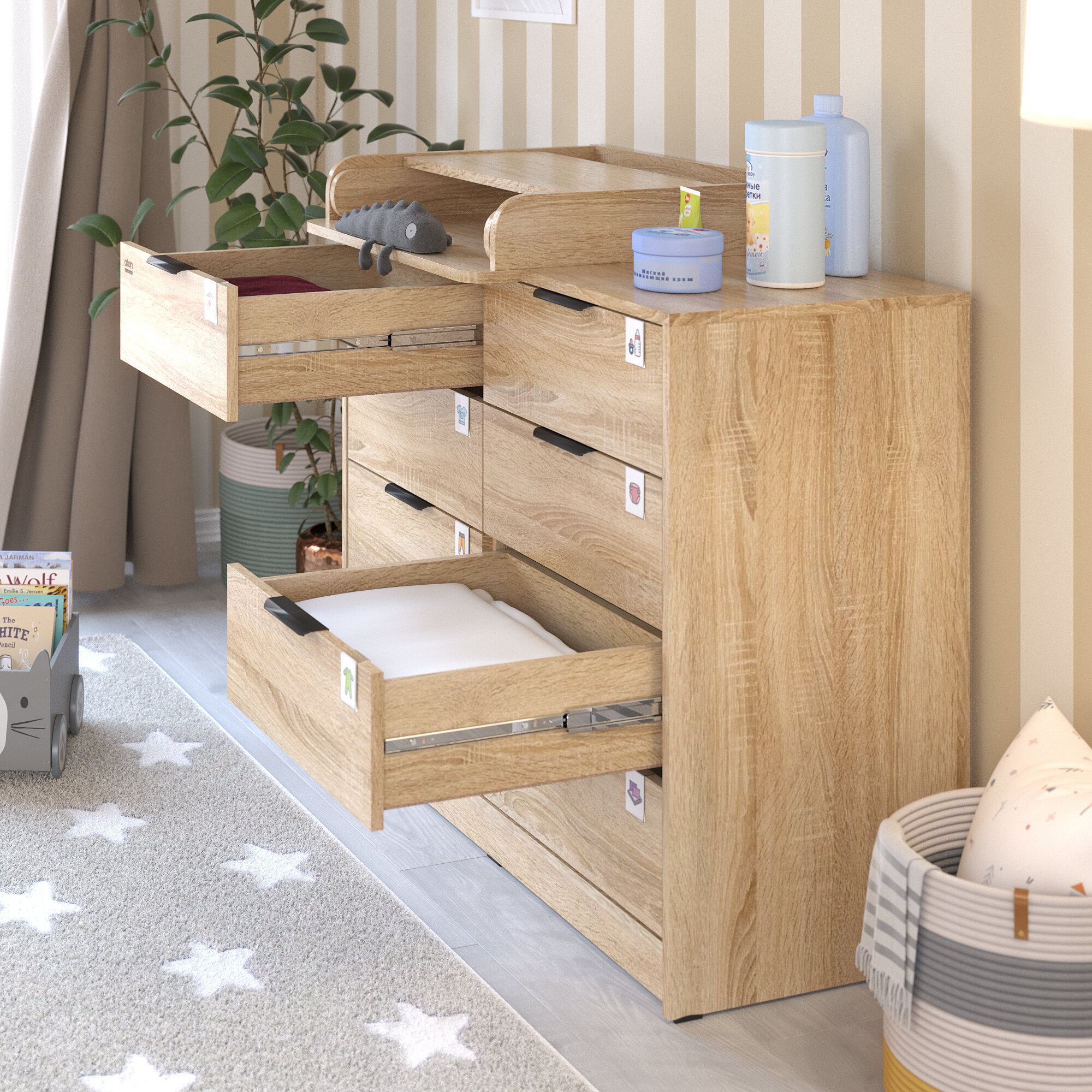 Комод пеленальный aton LEO, 5 ящиков с органайзером, дуб сонома