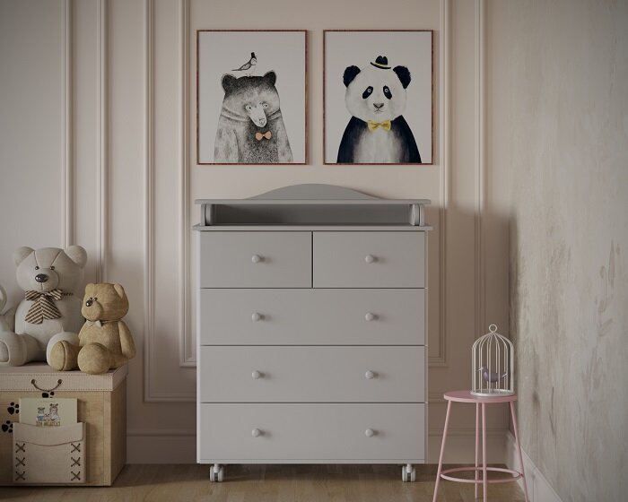 Комод NUVOLLA LUX 800/5 с широким откидным пеленальным столиком, ЛДСП, серый интересное: