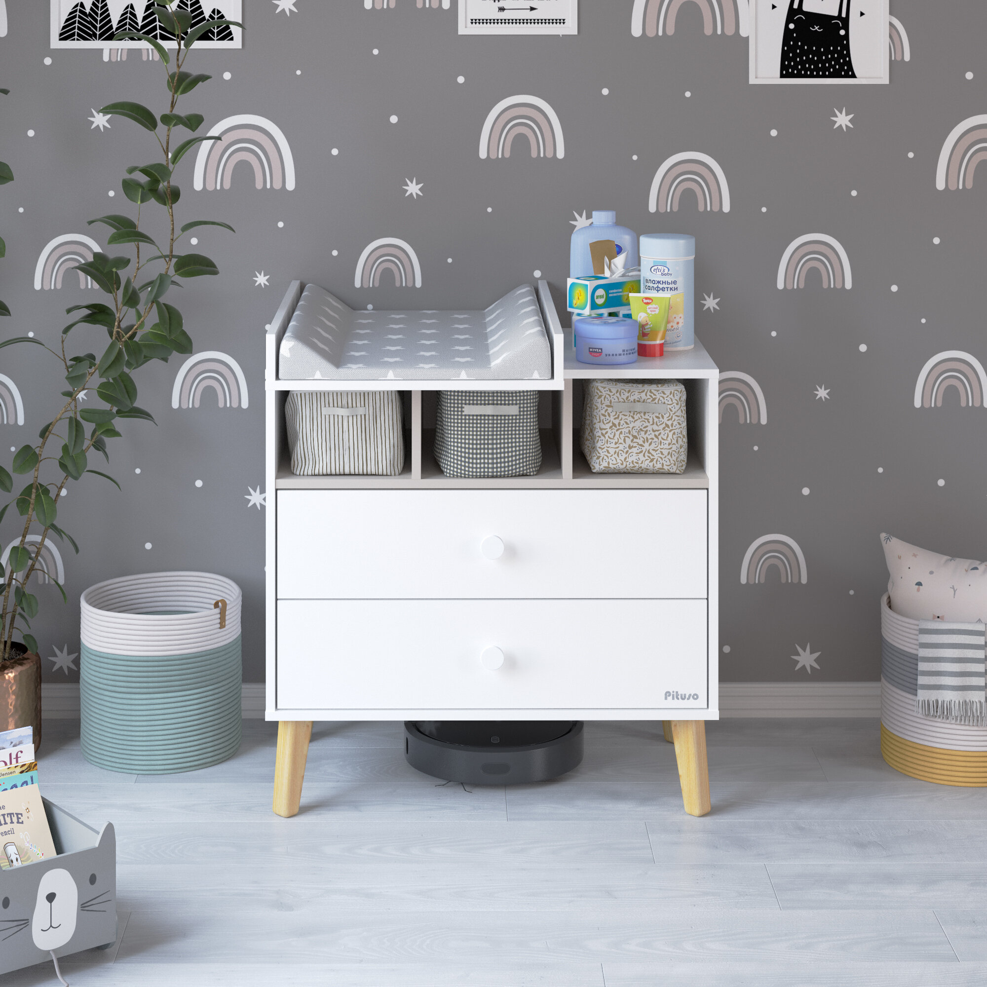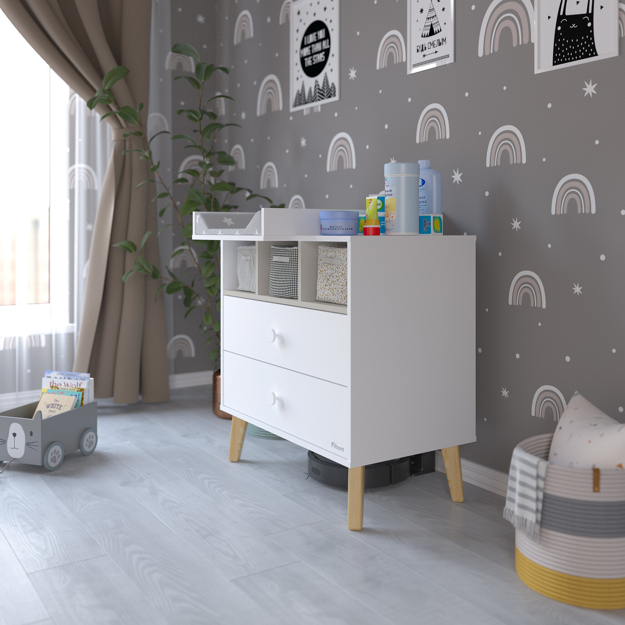 Комод пеленальный Pituso Kids Luxor, 2 ящика, белый/кашемир