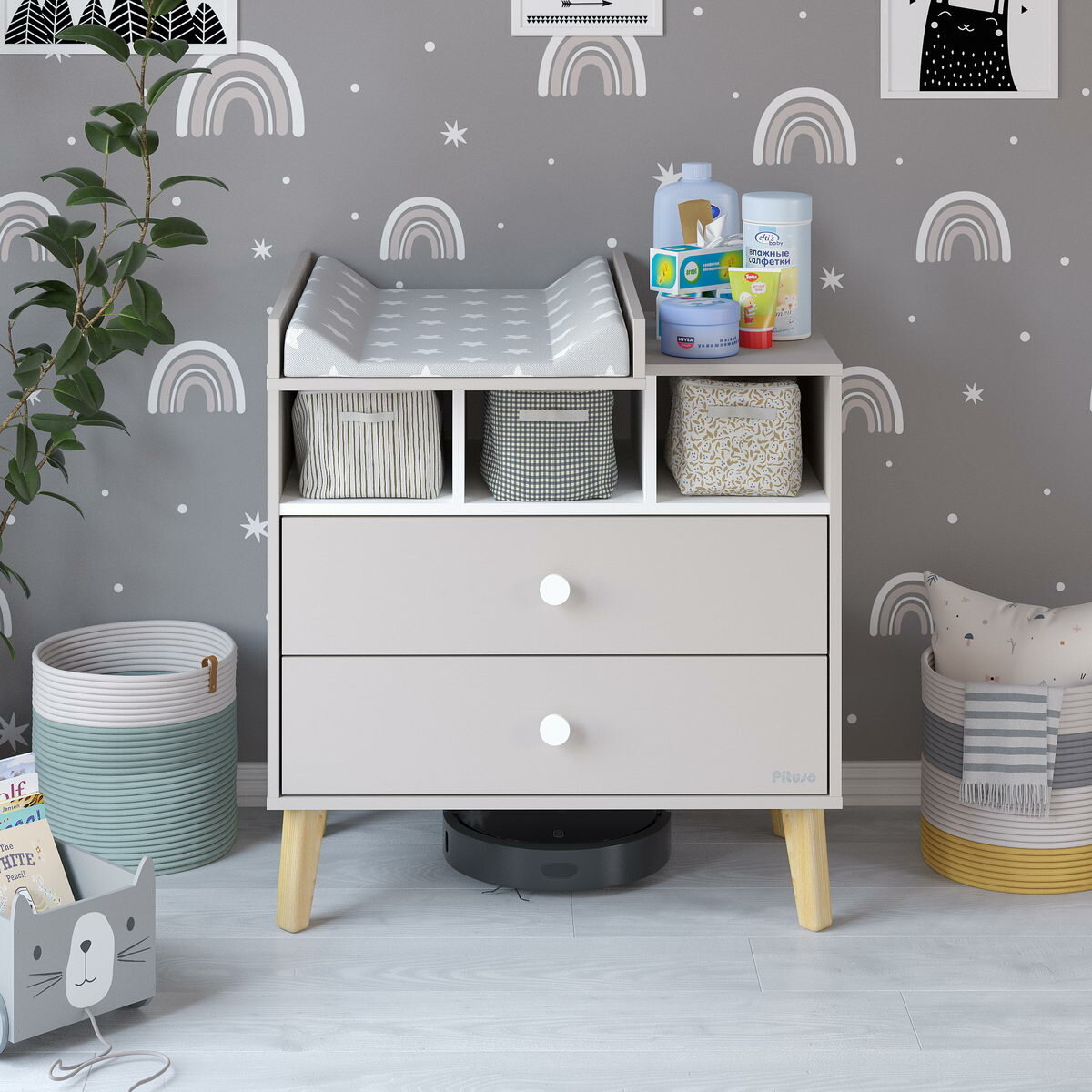 Комод пеленальный Pituso Kids Luxor, 2 ящика, белый/кашемир