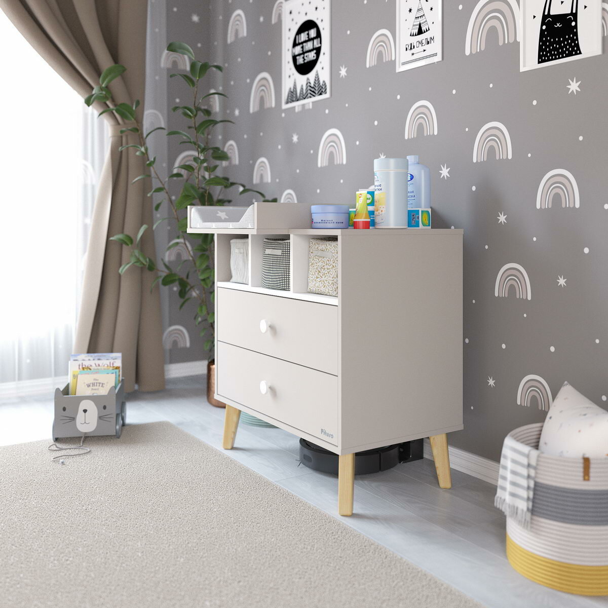 Комод пеленальный Pituso Kids Luxor, 2 ящика, кашемир/белый премиум