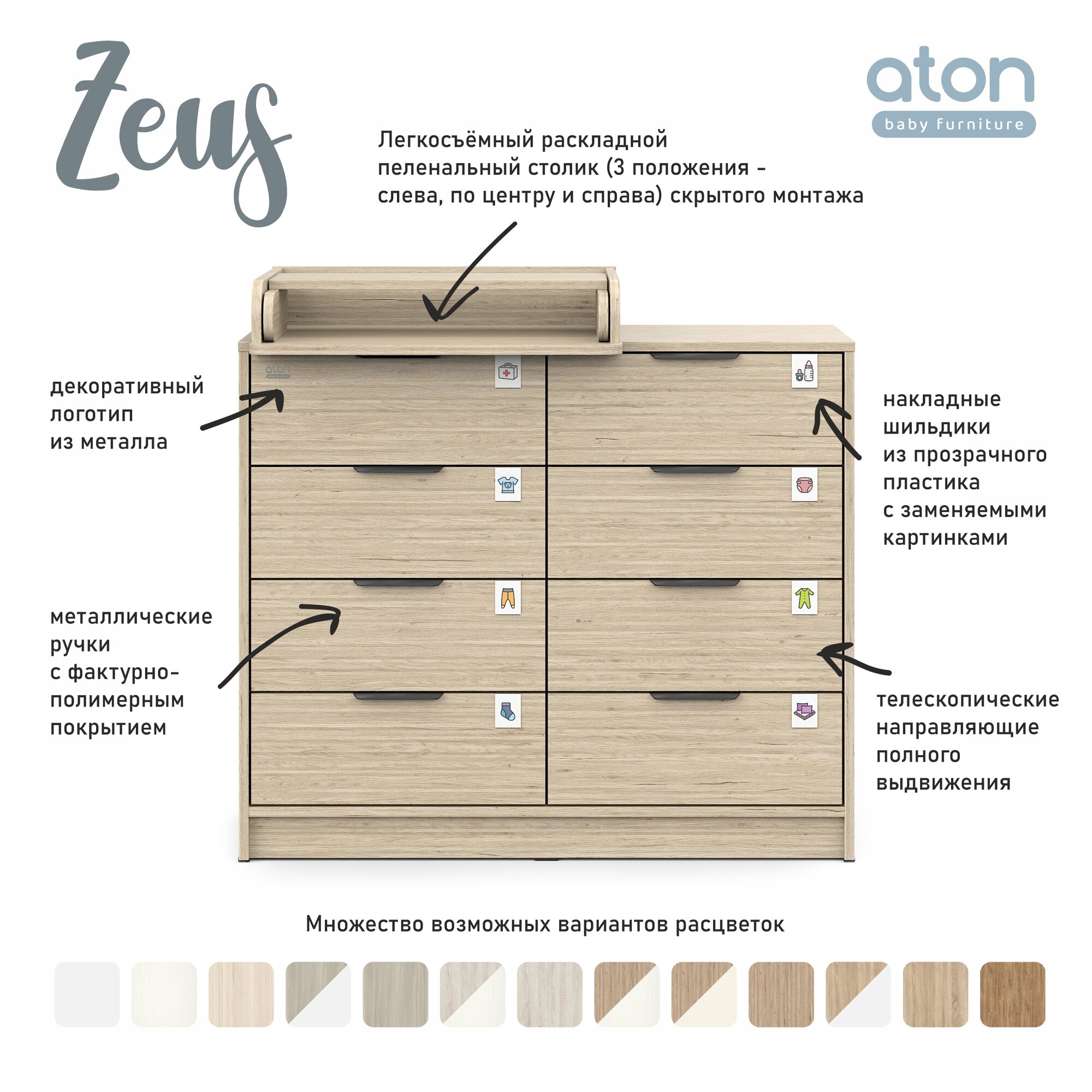 Атон комод "Zeus" шариковые направляющие 8 ящ. Шимо светлый