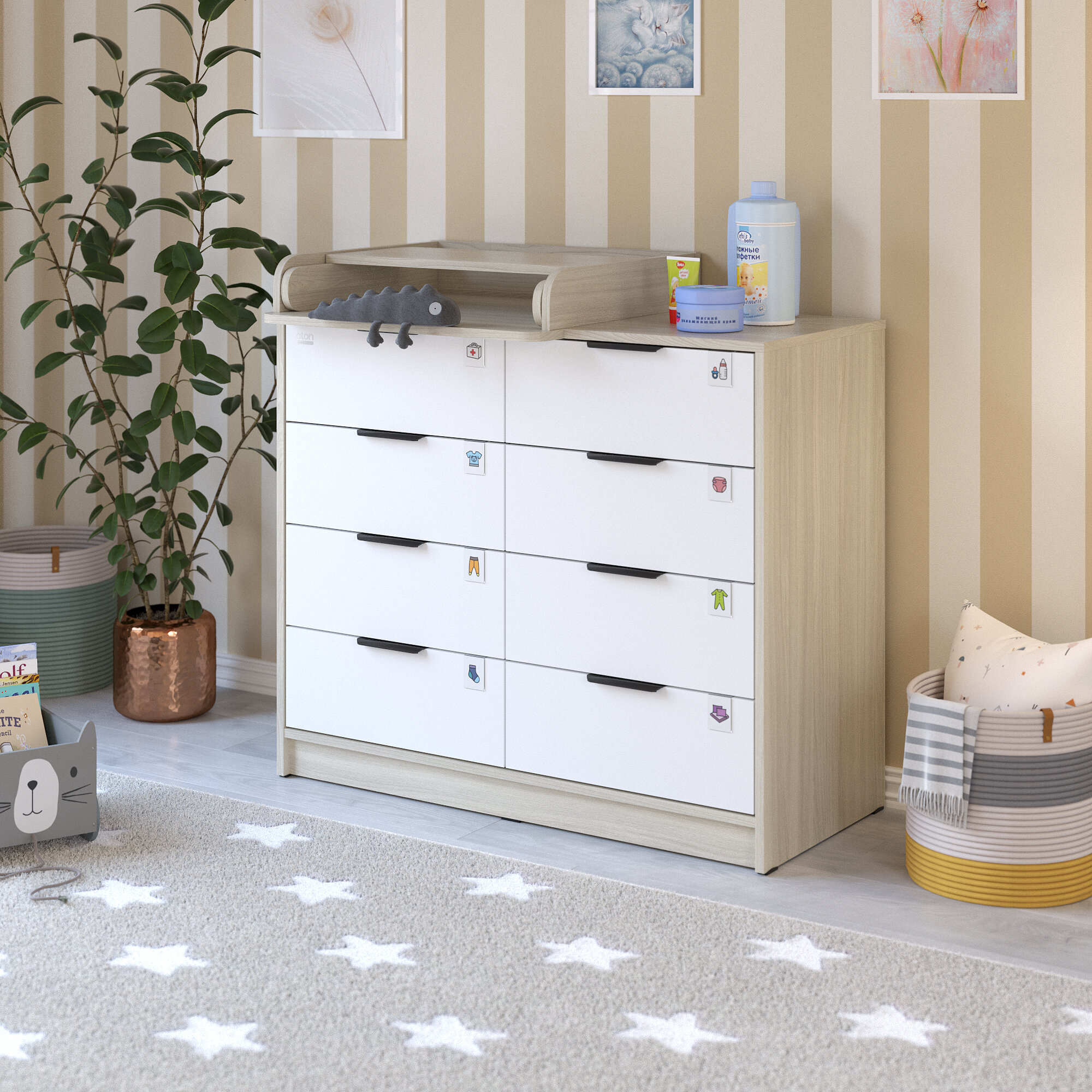 Атон комод "Zeus" шариковые направляющие 8 ящ.Дуб сонома/белый