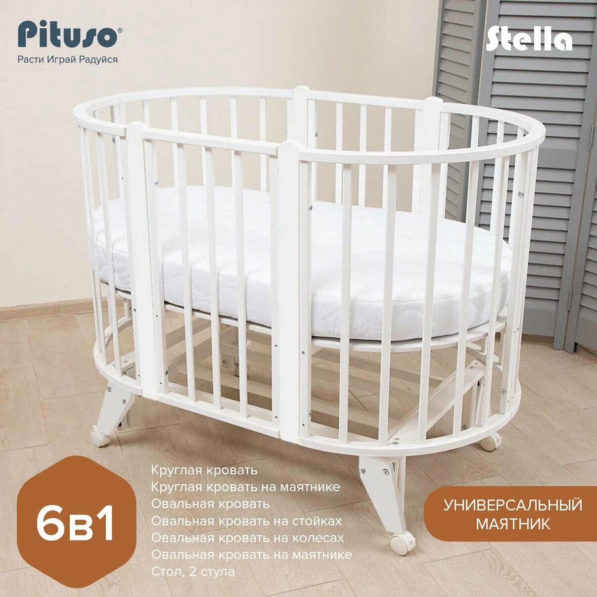 Купить Кровать детская Pituso Stella 6 в1 с универсальным маятником Белый Белый