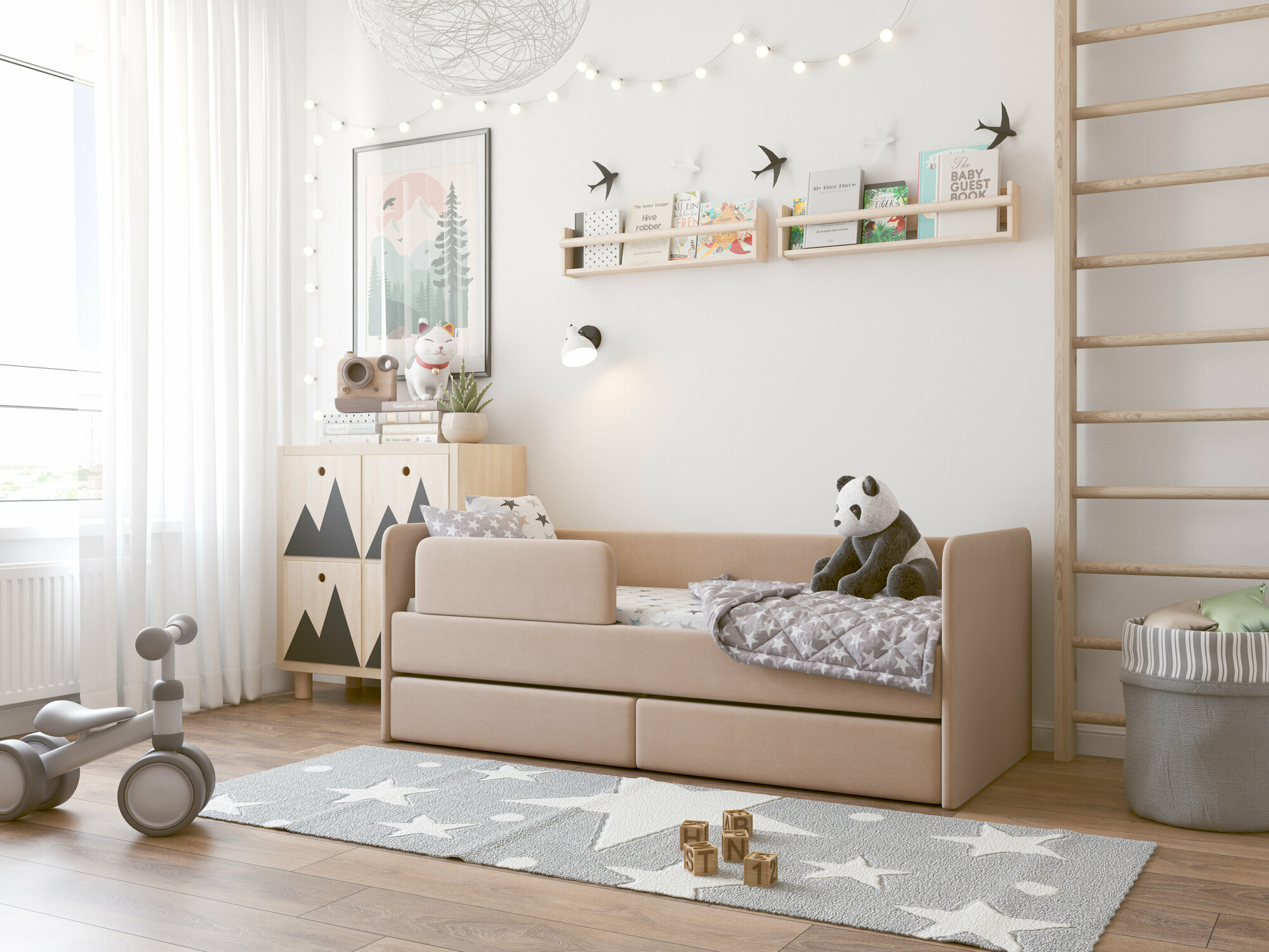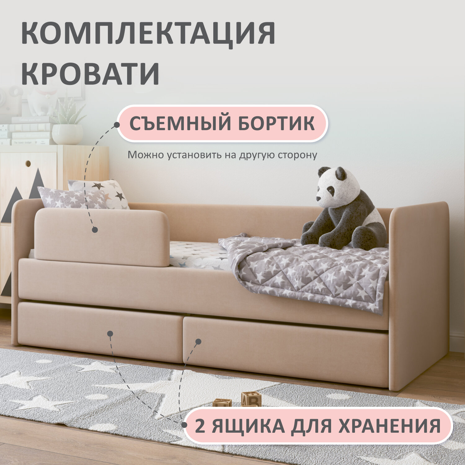 Детская кровать Romack Donny 2 70x160 с бортиком и выдвижными ящиками цвет: бежевый интересное: