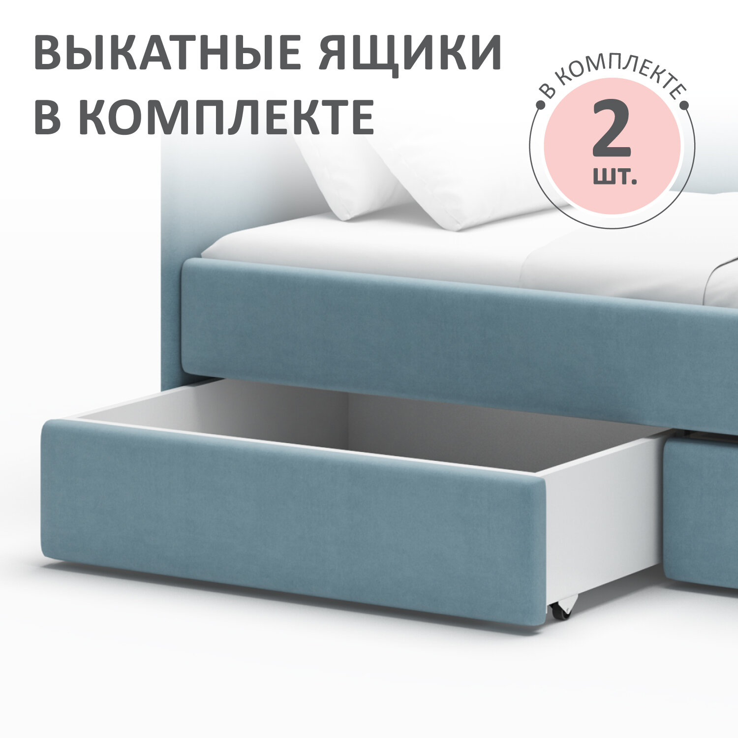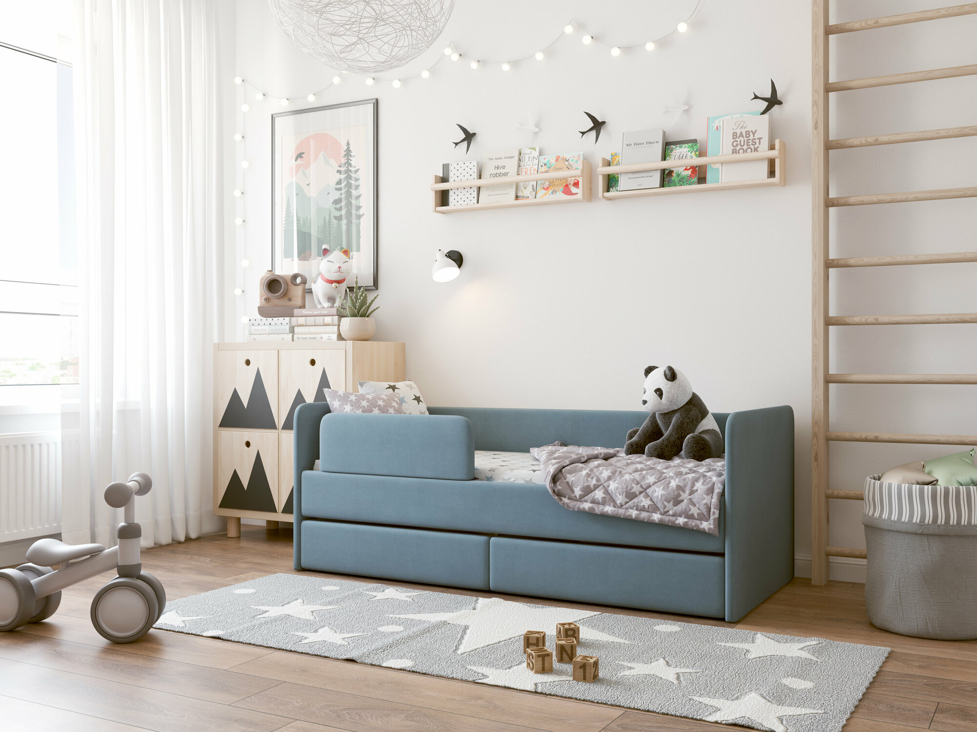 Детская кровать Romack Donny 2 70x160 с бортиком и выдвижными ящиками цвет: синий интересное: