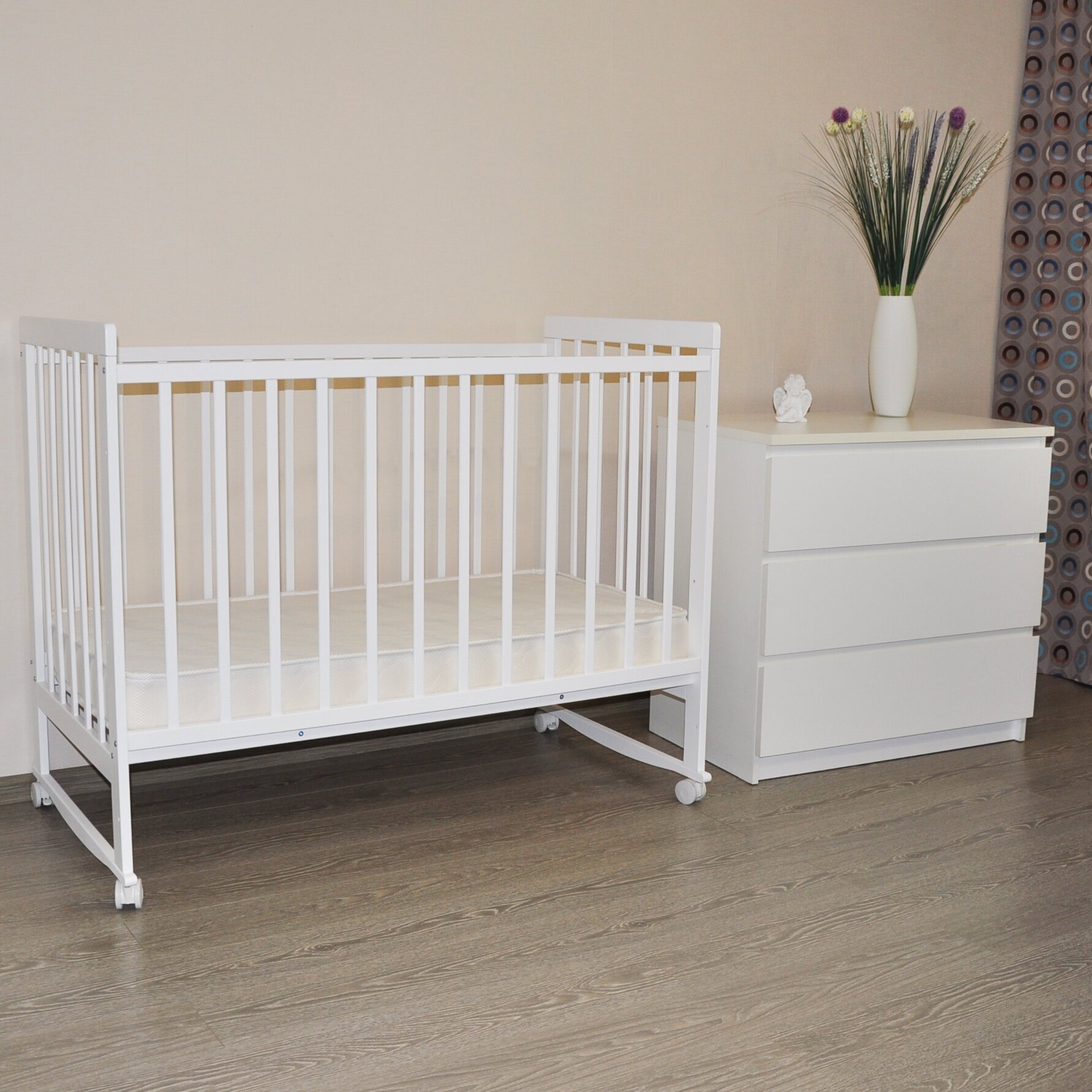 Кроватка Kristi колесо качалка без ящика, белый интересное:
