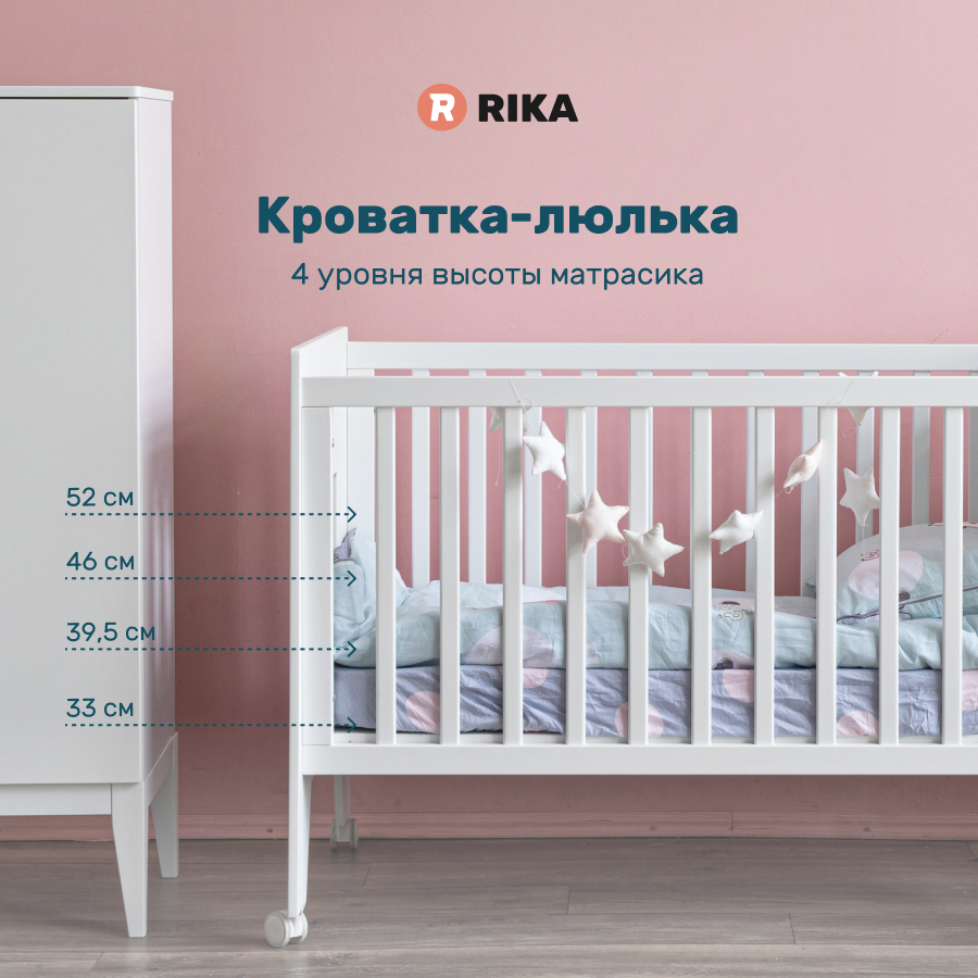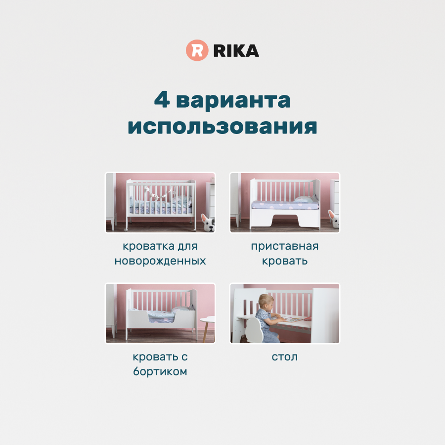 Кроватка для новорожденных MIA детская, кровать-трансформер-стол деревянная, массив бука, белый натуральный, 120х60 интересное: