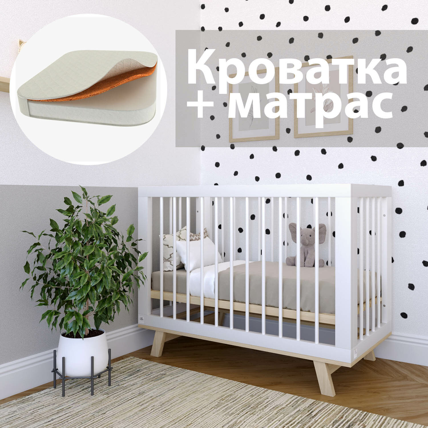 Купить Кровать Lillaland Lilla Aria 120*60 белый/дерево Lil-I-1.3 + Матрас Lilla Dreamtex 100610
