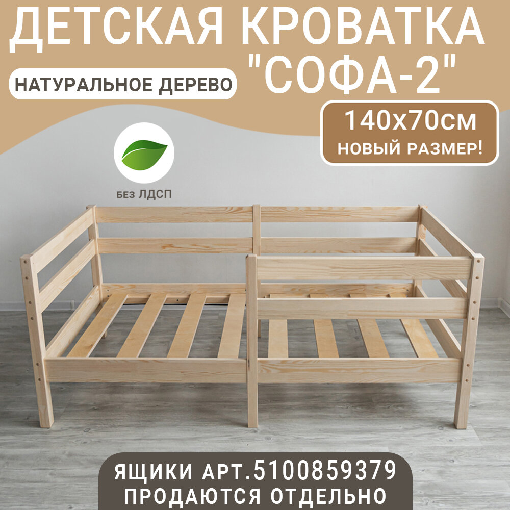 Детская кровать Софа-2, неокрашенная, спальное место 140х70 см интересное: