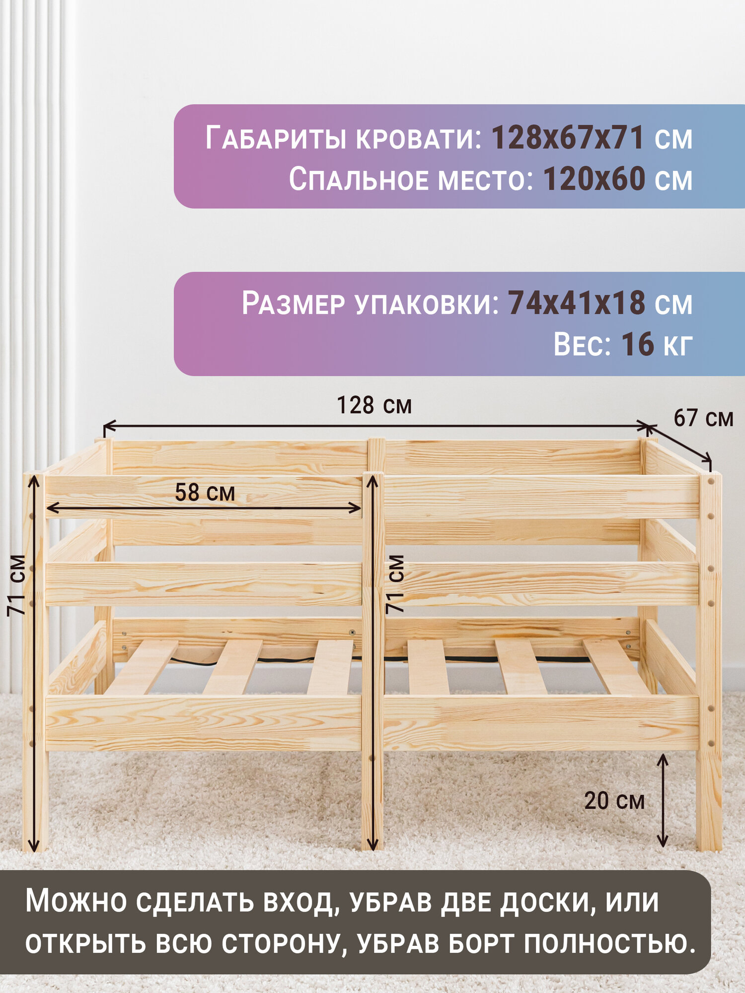 Детская кровать Софа-2, неокрашенная, спальное место 120х60 см интересное: