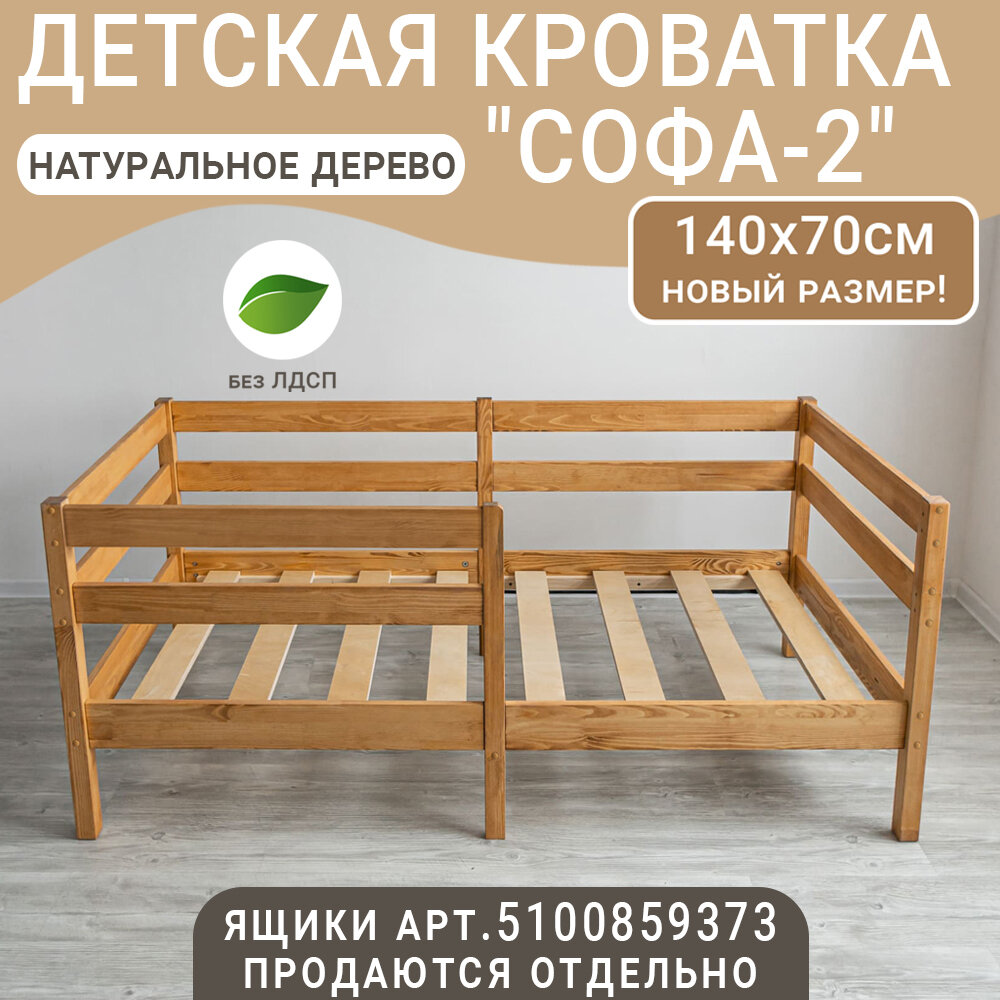 Детская кровать Софа-2, неокрашенная, спальное место 140х70 см