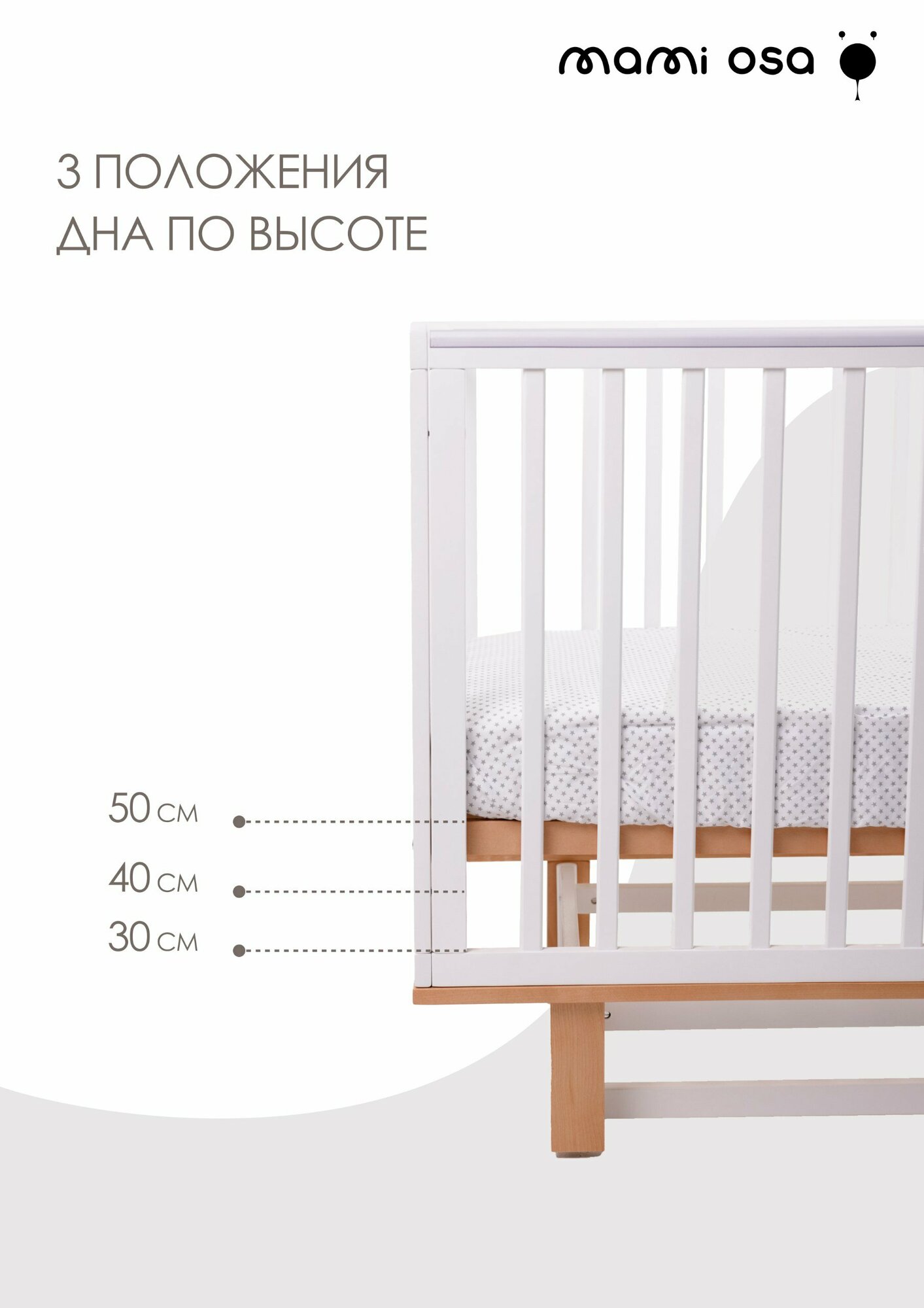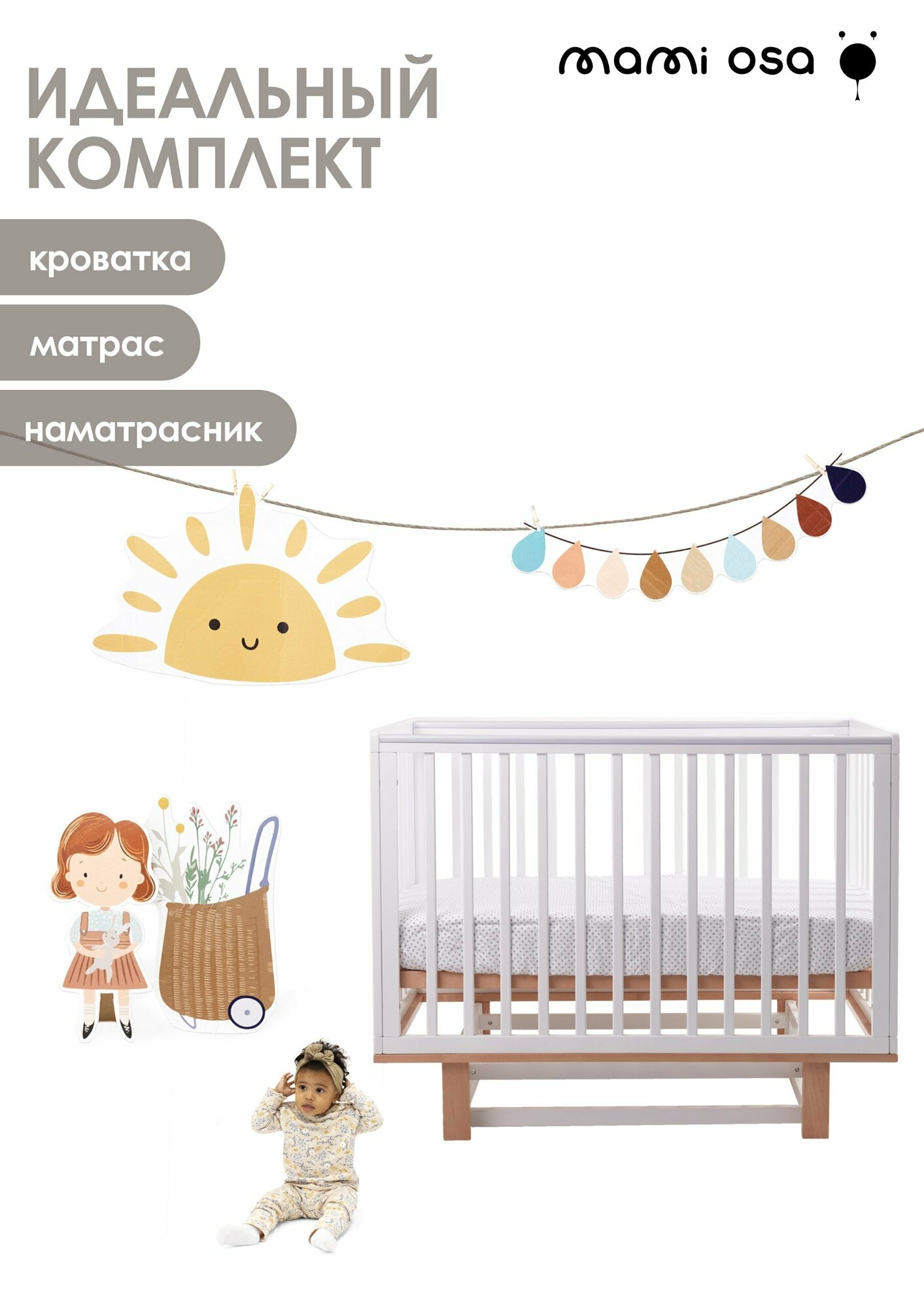 Комплект: Кроватка mamiosa детская CUNA BONITA, наматрасник, матрас, белый, дуб интересное: