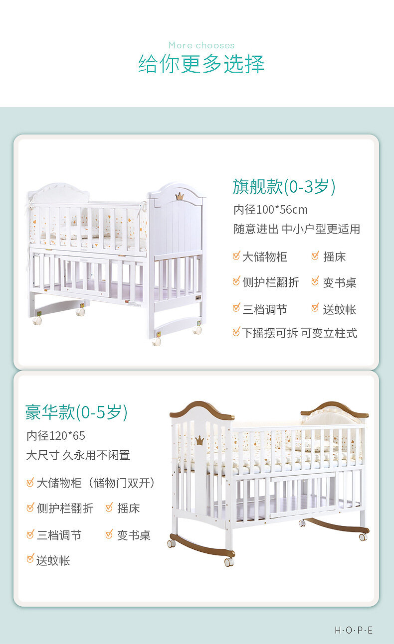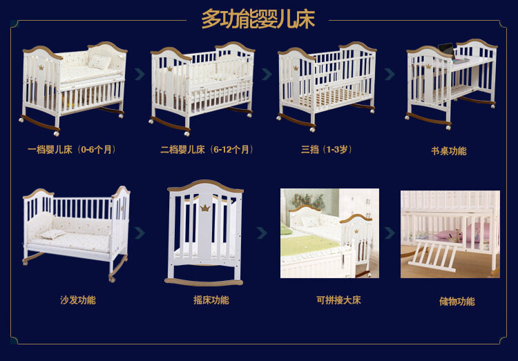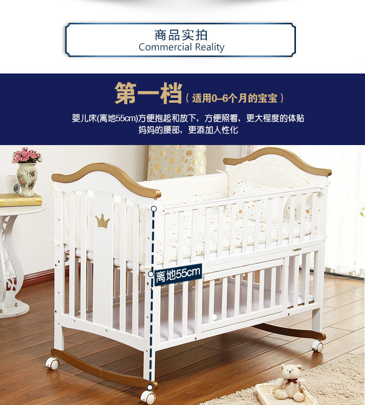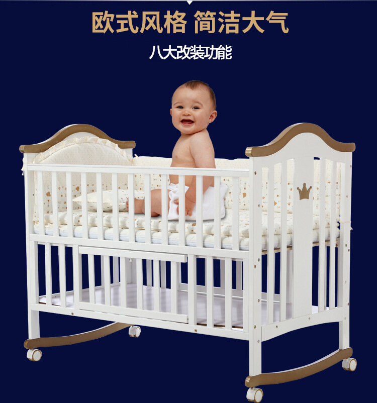 Детская кроватка Hebao, массив дерева, многофункциональная, с москитной сеткой, белая интересное: