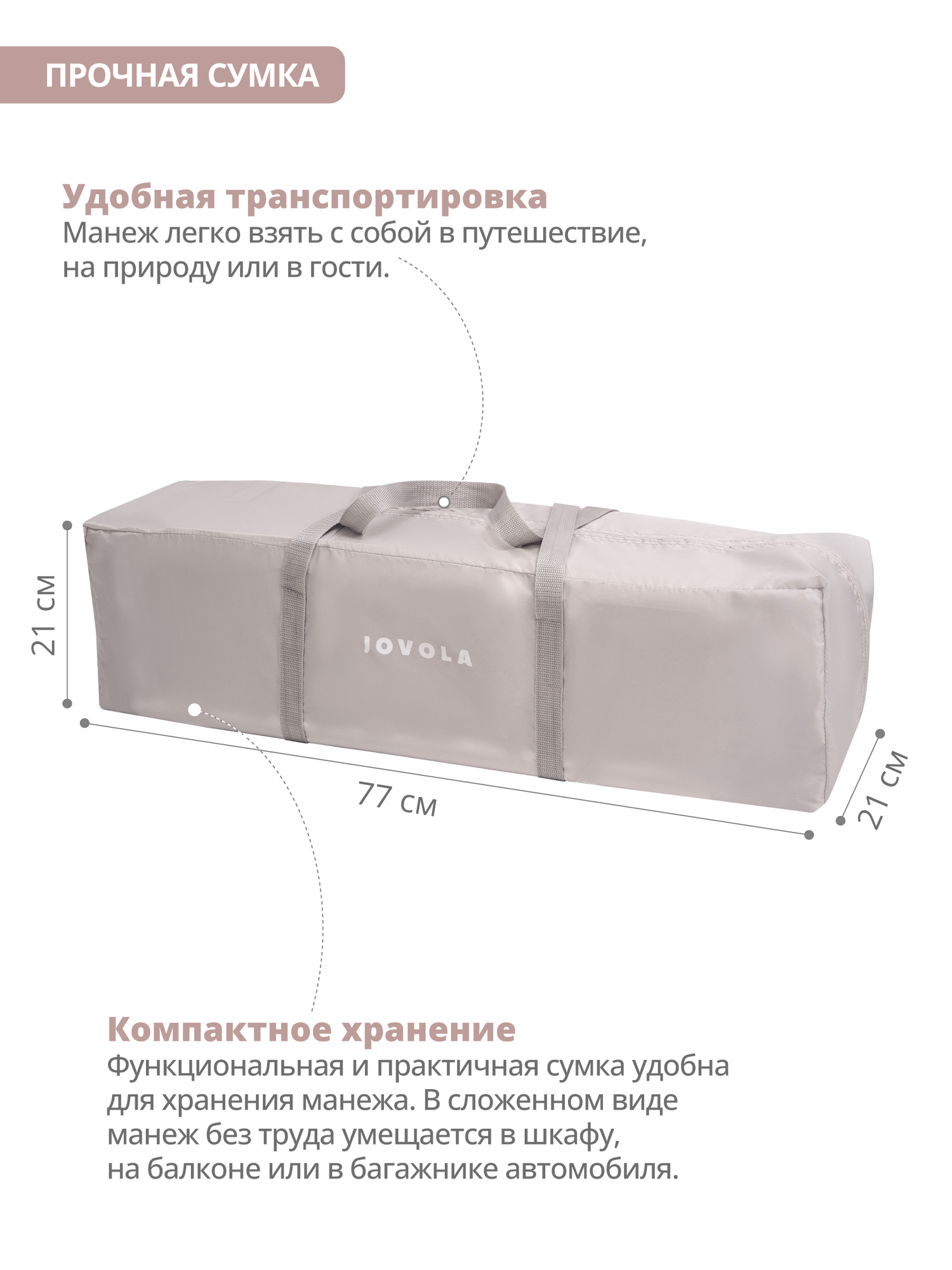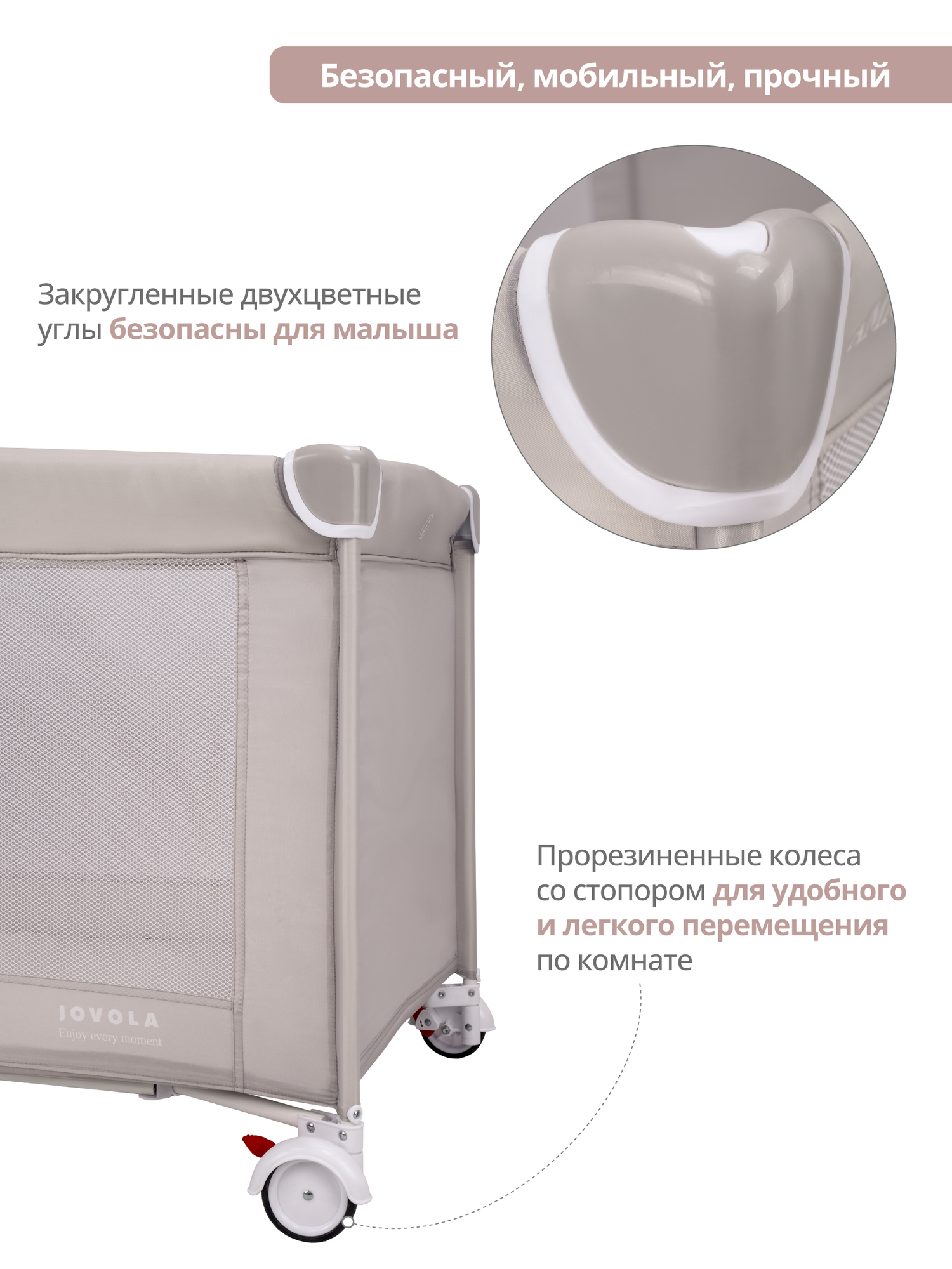 Манеж-кровать JOVOLA AMICO, 0-36 мес, складной, с аксессуарами, 2 уровня, бежевый
