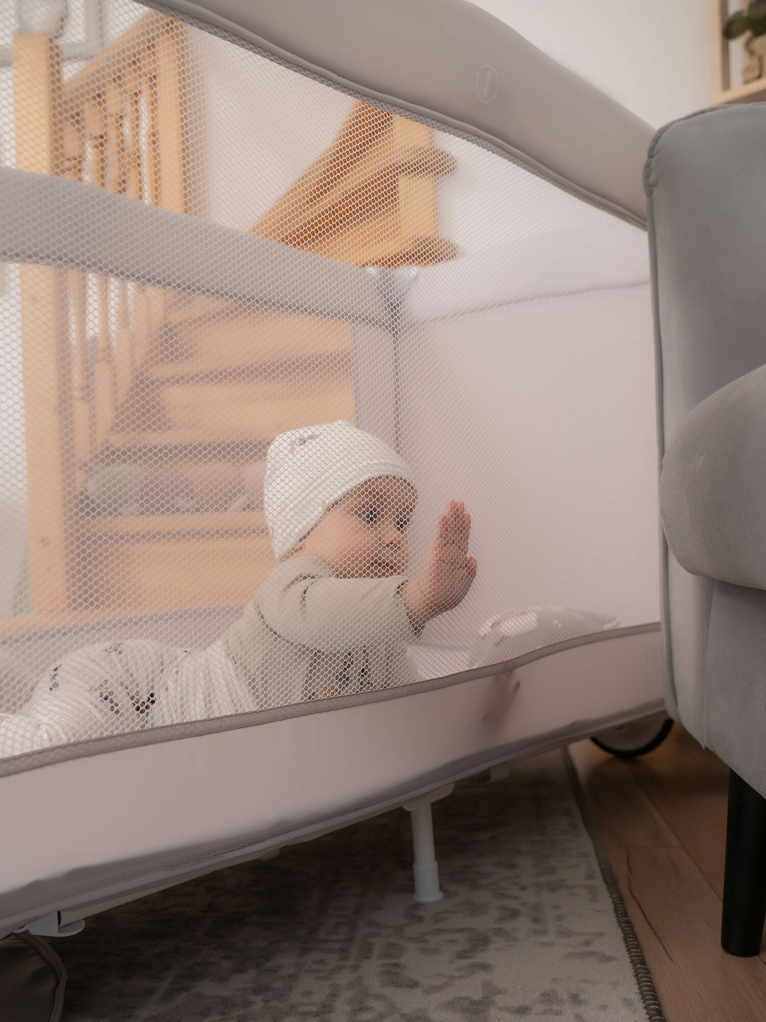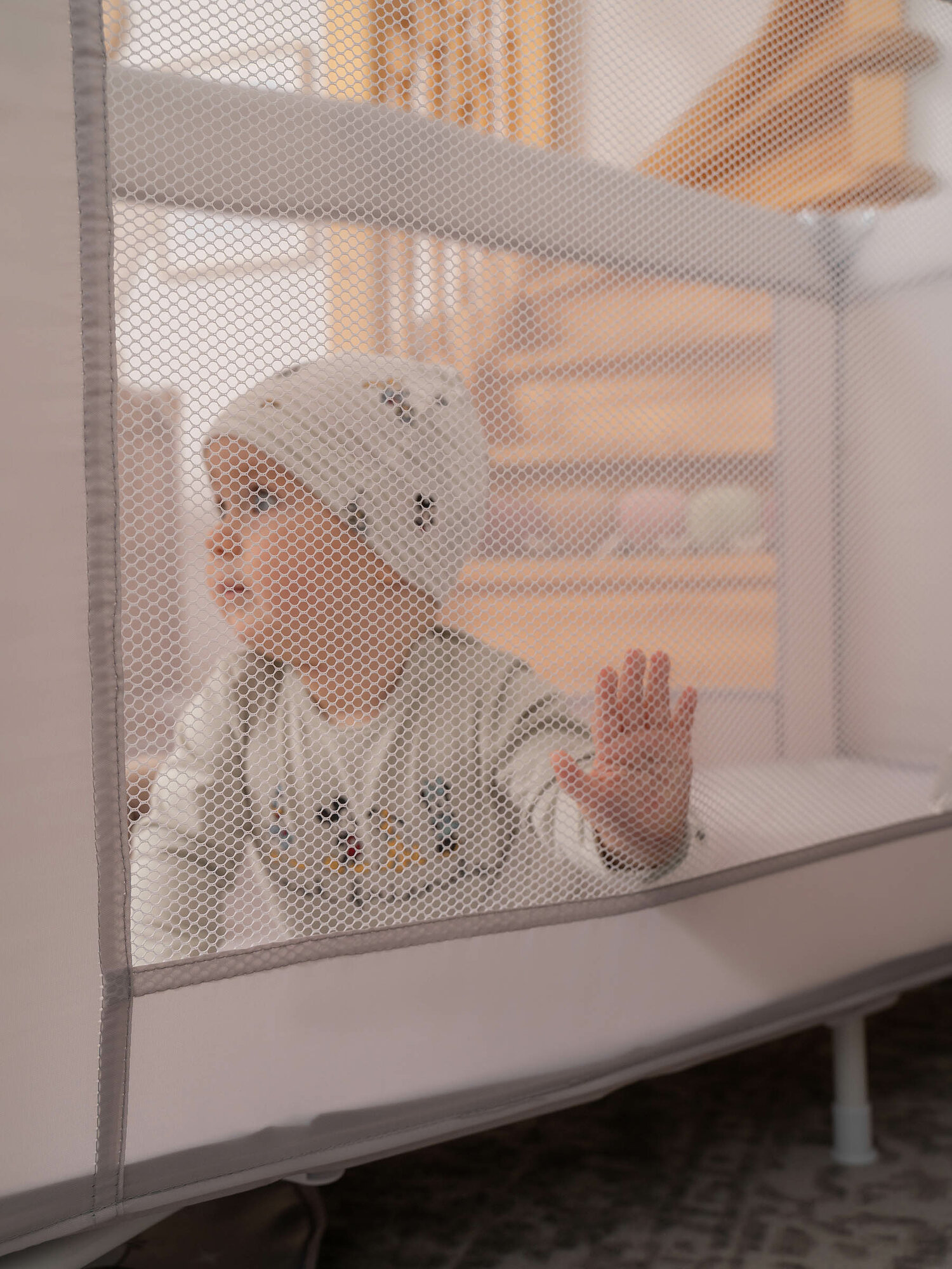 СохранитьМанеж-кровать JOVOLA AMICO, 0-36 мес, складной, с аксессуарами, 2 уровня, светло-серый интересное: