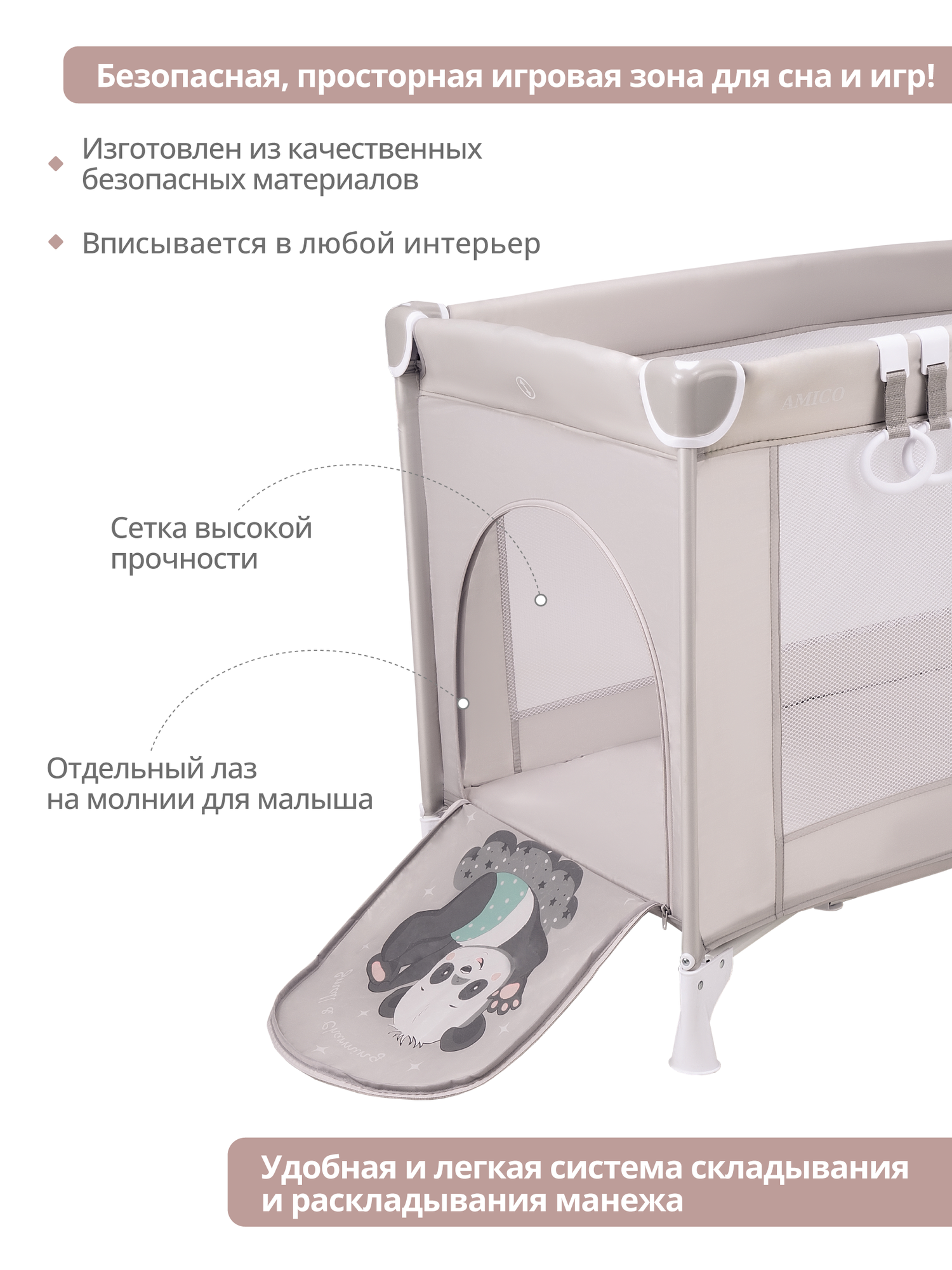 Купить Манеж-кровать JOVOLA AMICO, 0-36 мес, складной, с аксессуарами, 2 уровня, светло-серый
