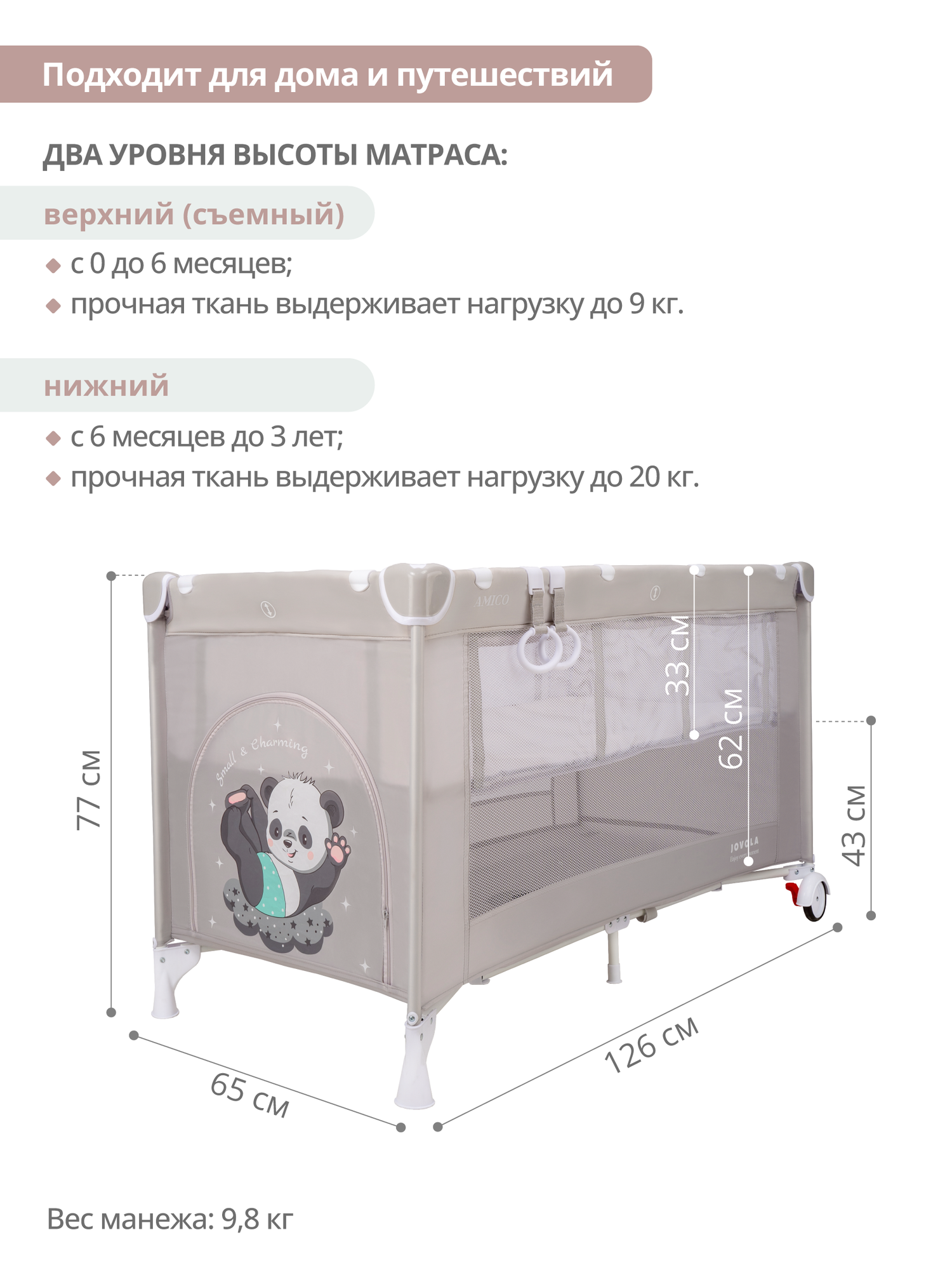 Манеж-кровать JOVOLA AMICO, 0-36 мес, складной, с аксессуарами, 2 уровня, бежевый бамбук
