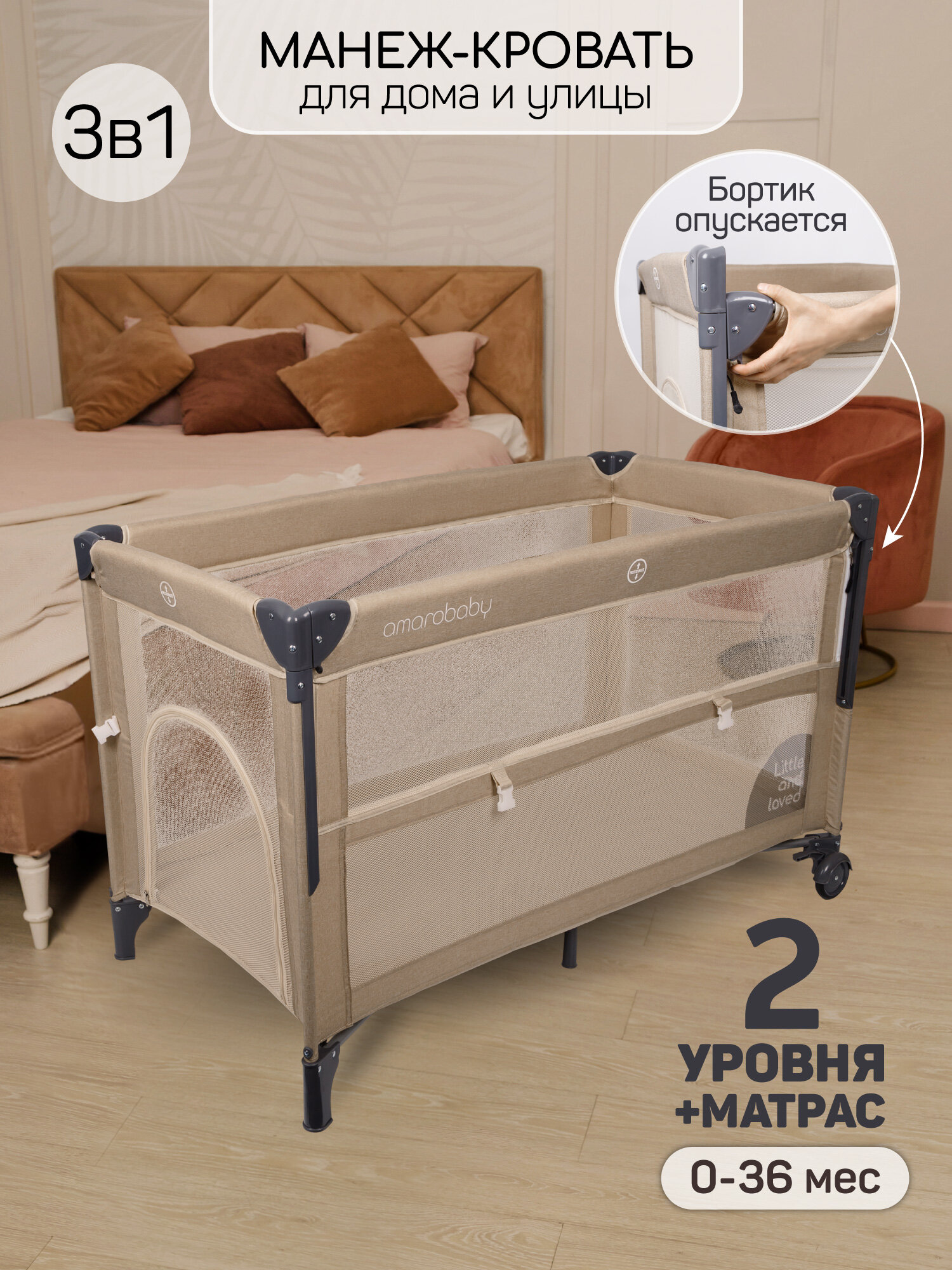 Манеж-кровать Amarobaby TRANSFORM (Classic) прямоугольный, бежевый интересное: