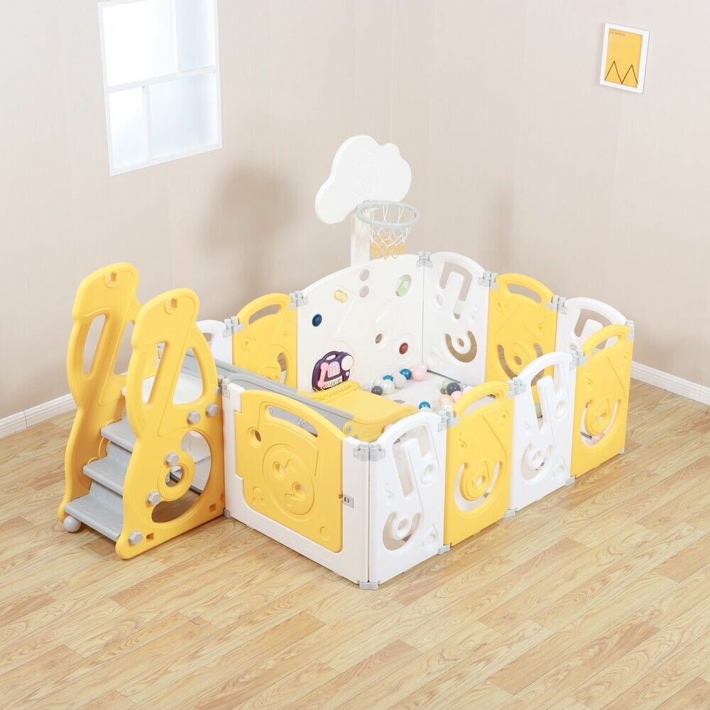 Манеж UNIX Kids "SUPREME Space" Grey, серый/белый, 160x160 см, с ковриком, горкой и баскетбольным кольцом для дома, улицы