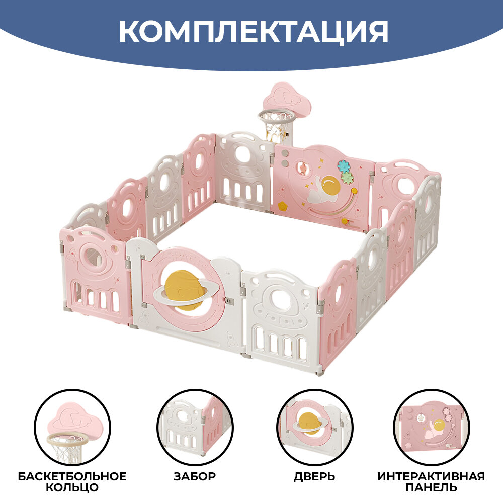 Детский манеж-ограждение 12+2 секции Космос 200х180х65 см интересное: