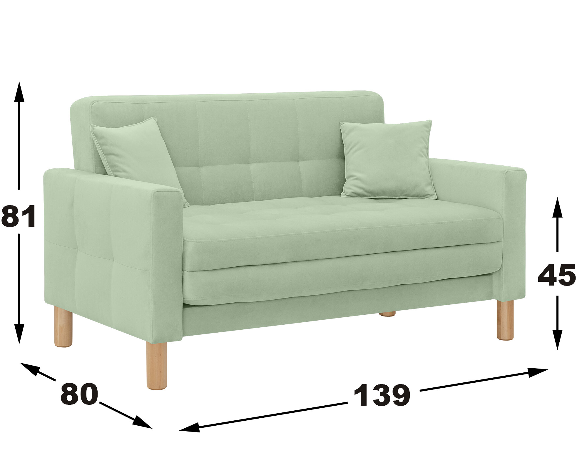 Купить Диван-кровать Этро -макси, прямой, 140х80х81 , спальное 120*194, велюр мятный, Велутто 14