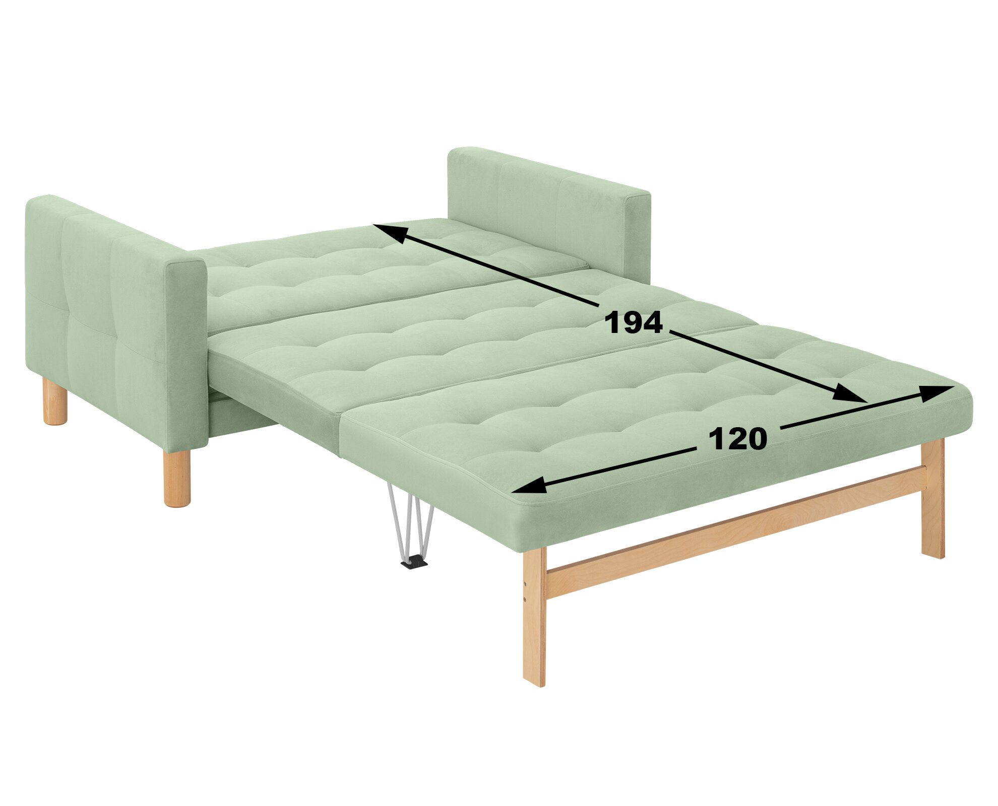 Диван-кровать Остин-макси, прямой, 140х80х81 , спальное 120*194, велюр мятный, Велутто 14