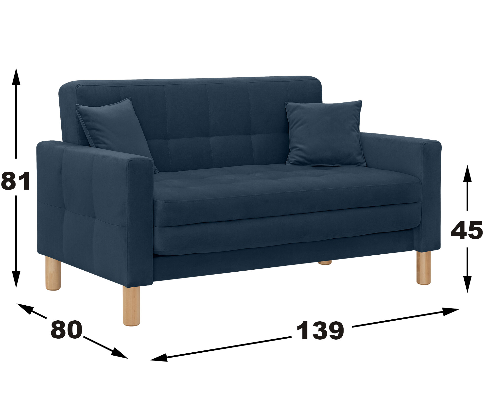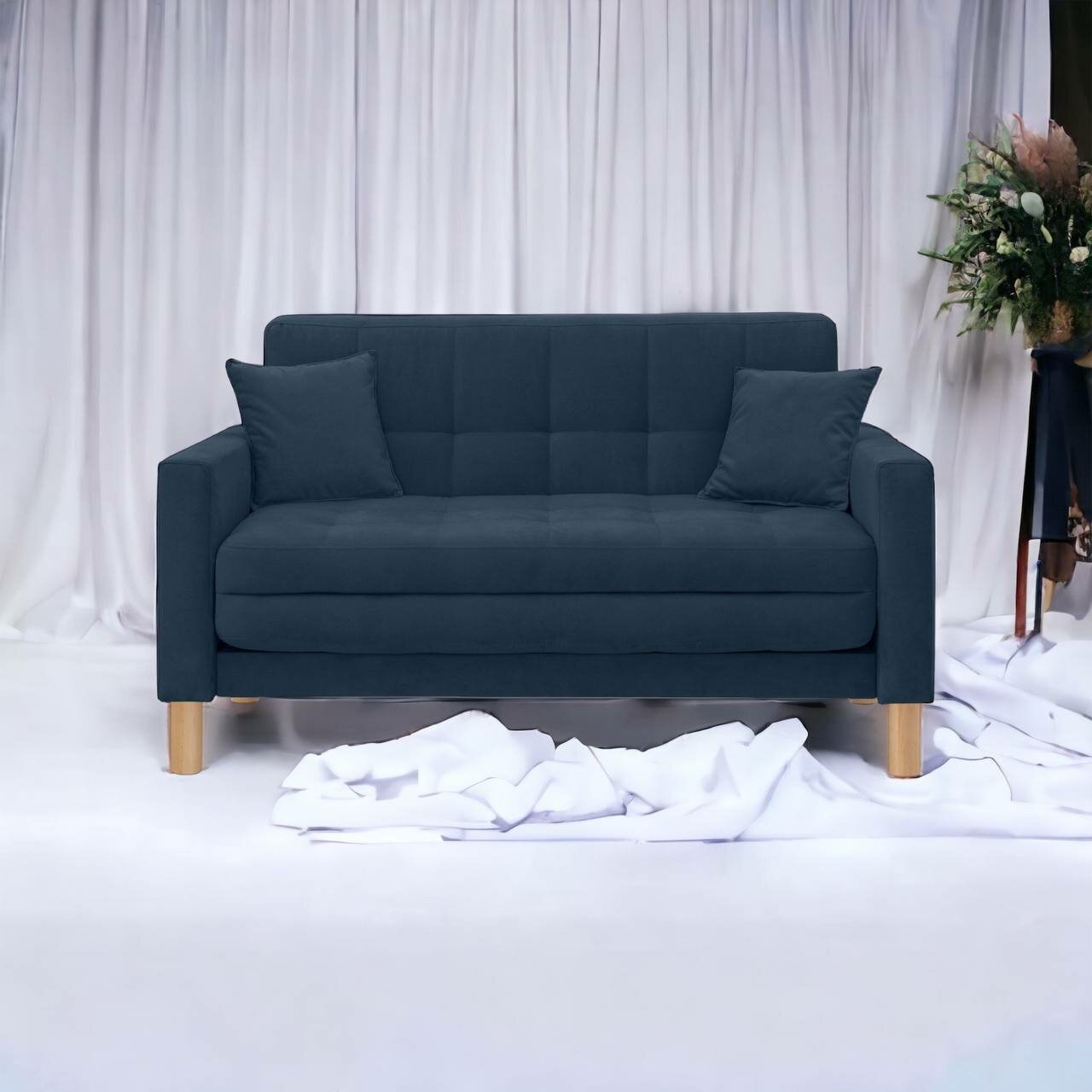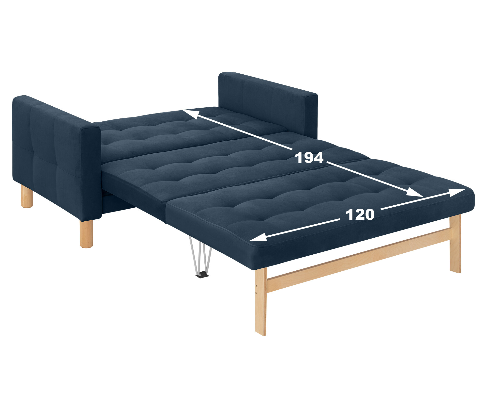 Диван-кровать Остин-макси, прямой, 140х80х81 , спальное 120*194, велюр синий, Велутто 26