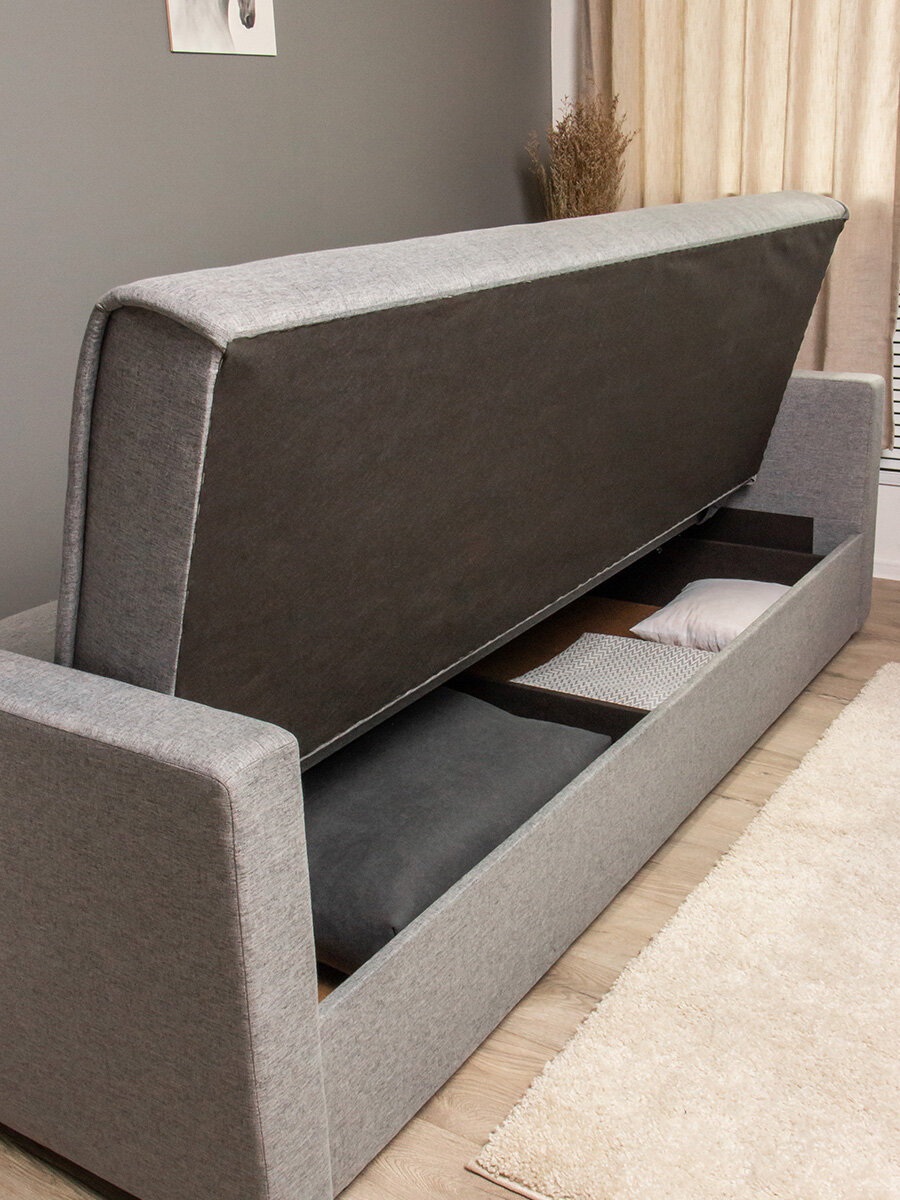 Диван кровать раскладной с подлокотниками и ящиком, 217х100х91 см, Серый Лагуна 994 интересное: